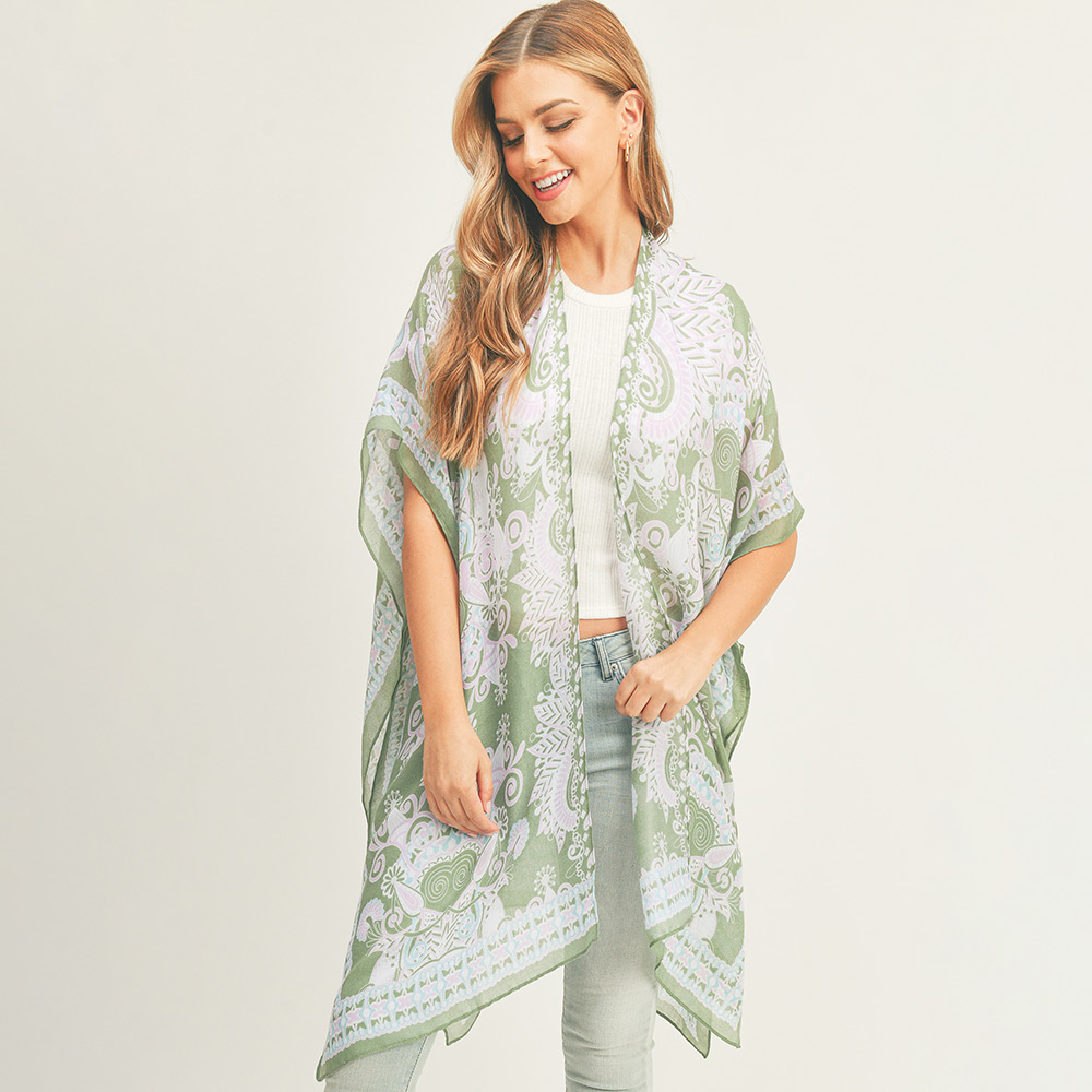 Illustrated Flower Pattern Printed Square Silky Satin Bandana Scarf