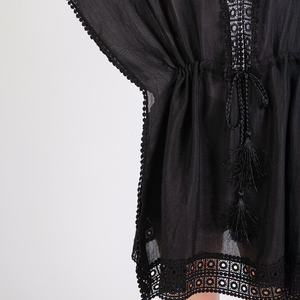 Crochet Trim Front Drawstring Cover Up Poncho