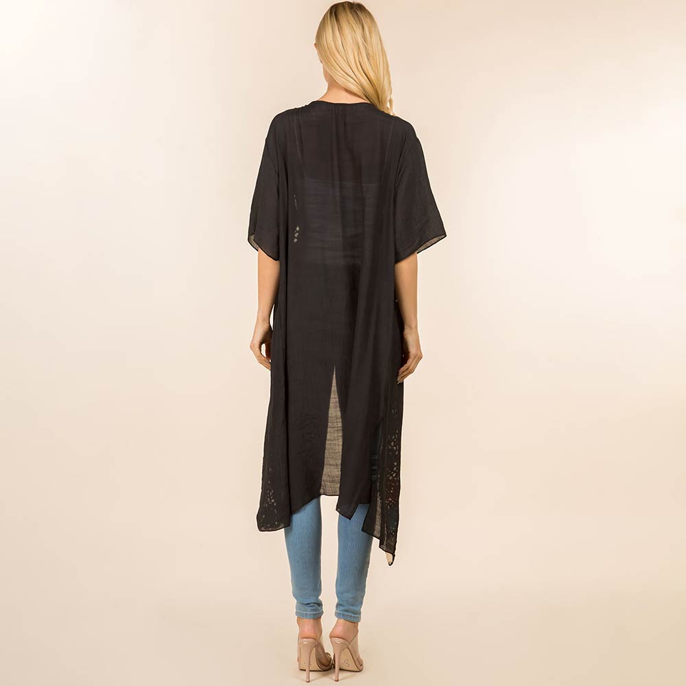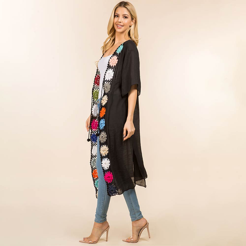 Floral Crochet Trim Open Front Long Kimono Poncho Floral Crochet Trim Open Front Long Kimono Poncho Floral Crochet Trim Open Front Long Kimono Poncho
