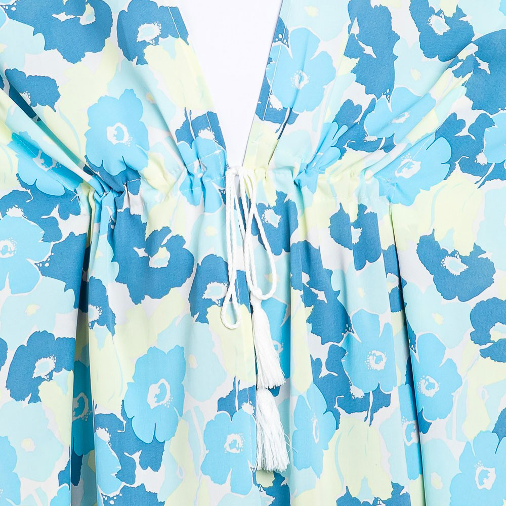 Flower Print Self-Tie Drawstring Open Front Cover-Up Kimono Poncho