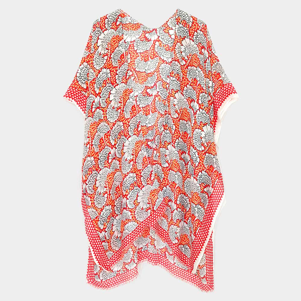 Flower Printed Cover Up Kimono Poncho