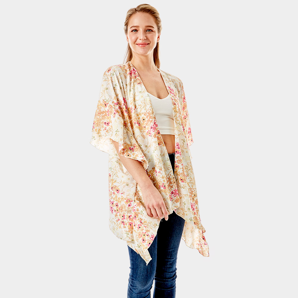 Flower Printed Ruffle Sleeves Cover Up Kimono Poncho