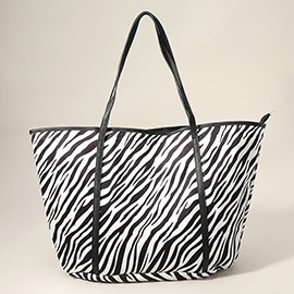 2PCS - Color Block Accented Solid Beach Tote Bag and Mini Pouch Bag Set