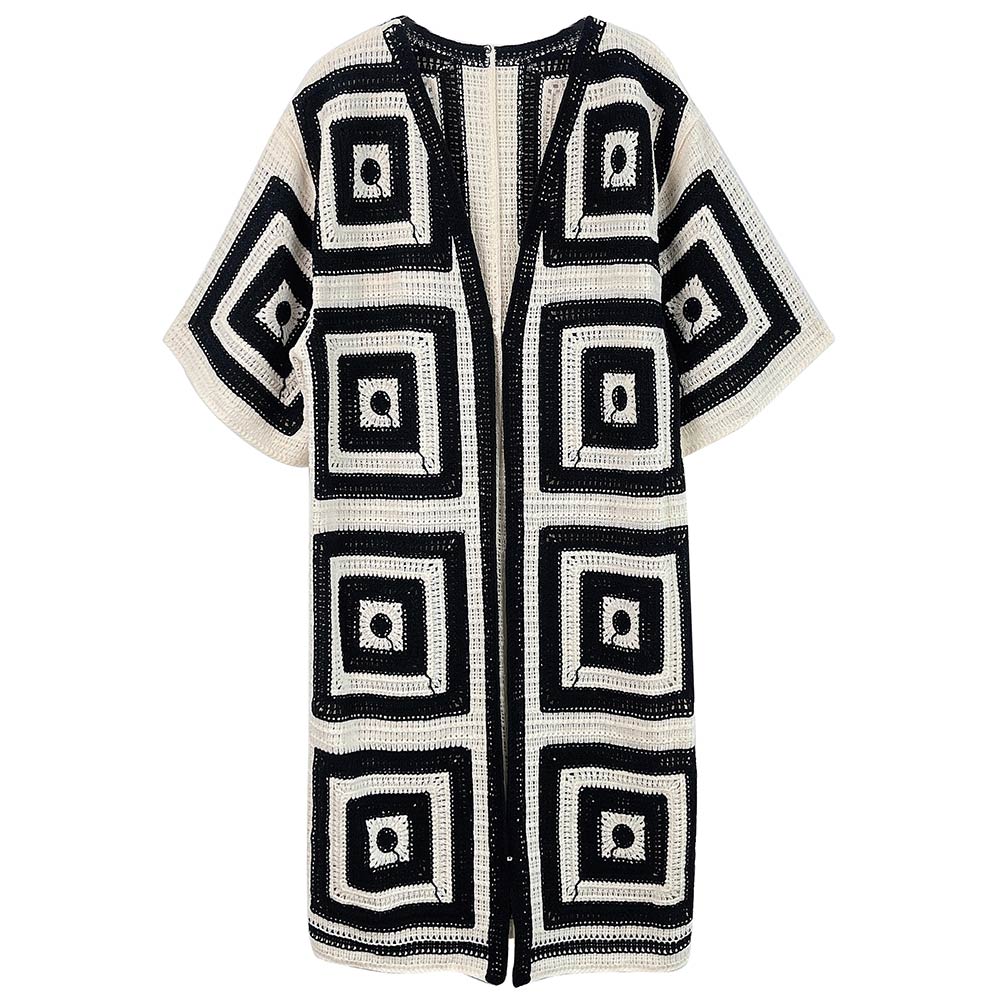 Geometric Square Pattern Crochet Long Cardigan Geometric Square Pattern Crochet Long Cardigan Geometric Square Pattern Crochet Long Cardigan