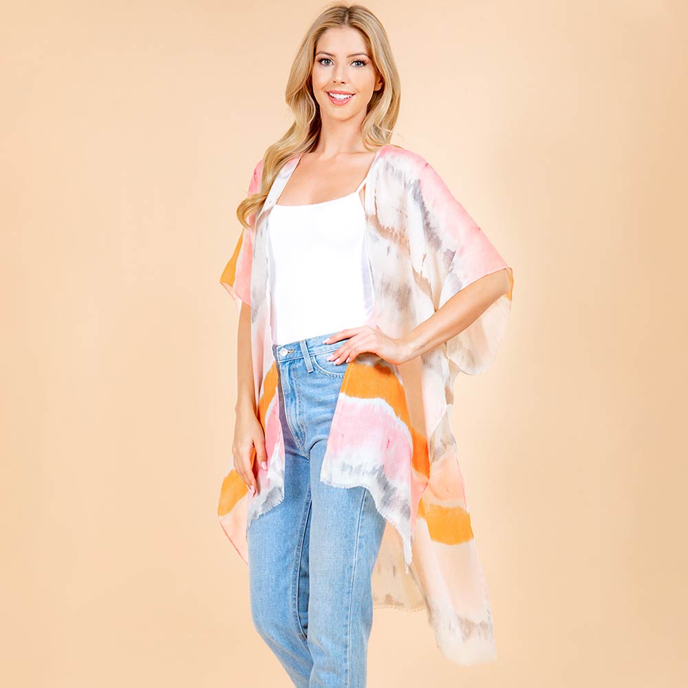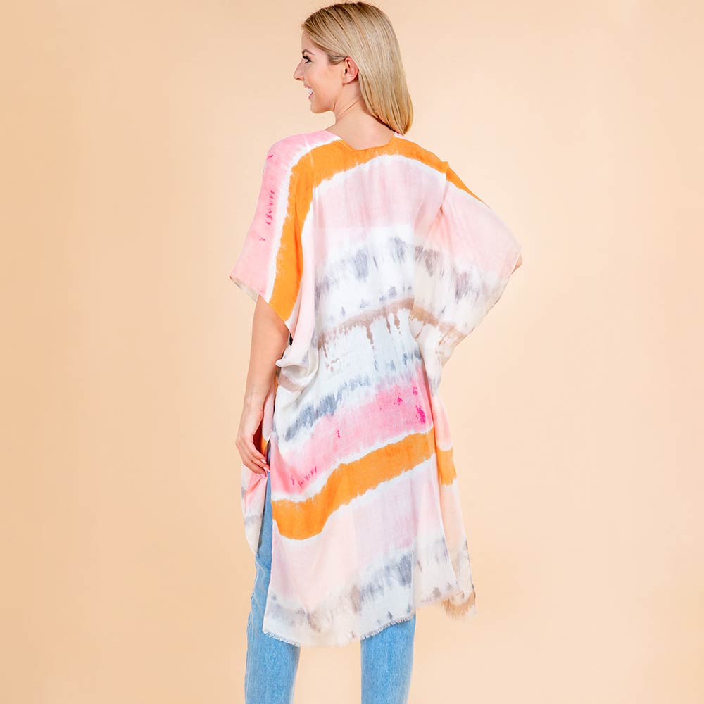 Lightweight Pastel Tie-dye Open Front Kimono Poncho