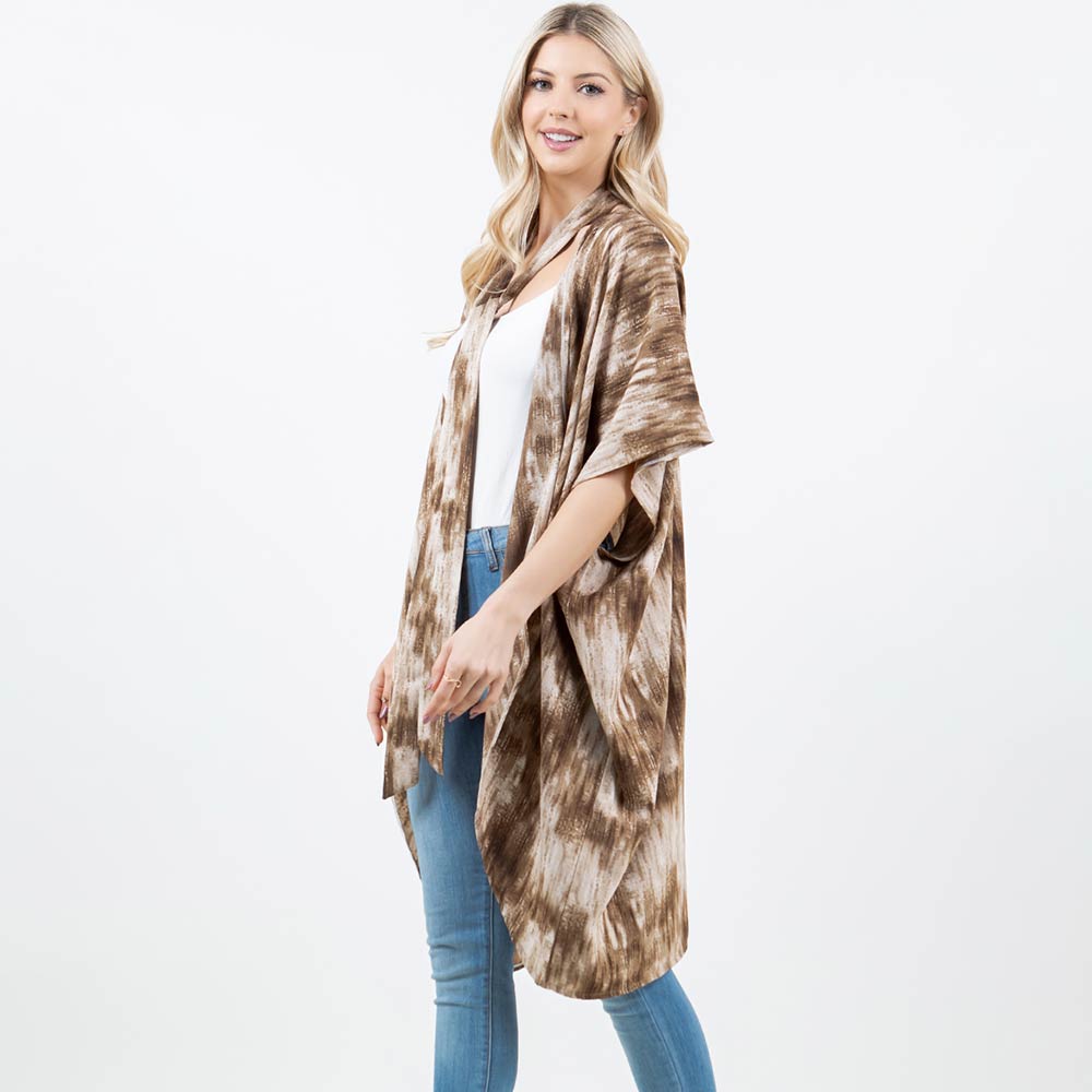 Details • Size : One Size • Material : 100% Polyester • Flowy kimono-style wrap designed with an abstract brush pattern and an open-front silhouette for effortless layering. Drapes beautifully over tops, dresses, or casual outfits for everyday wear or travel. A versatile fashion piece ideal for gifting and boutique collections seeking relaxed, modern style.