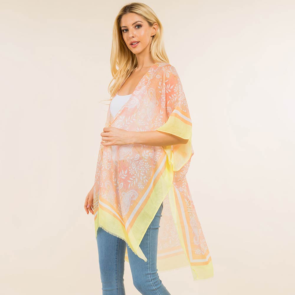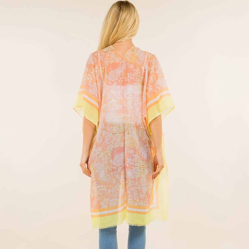 Paisley Border Pattern Open Front Kimono Poncho