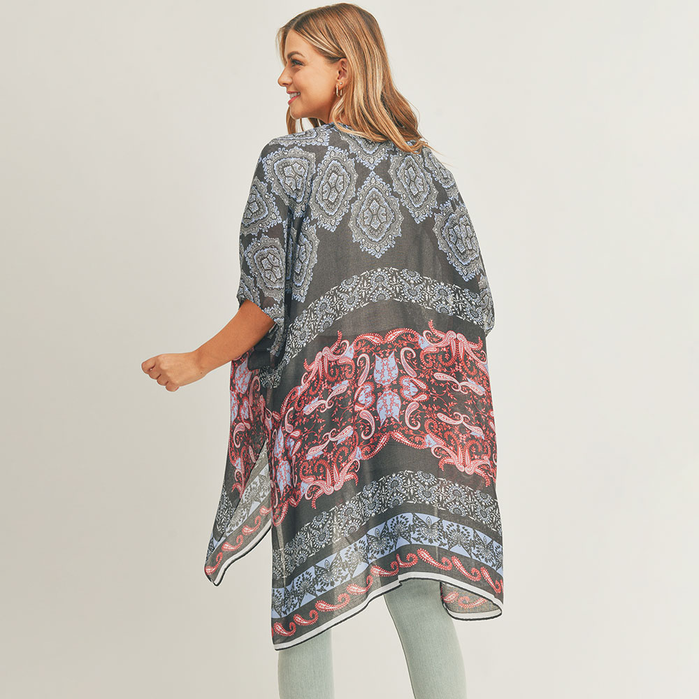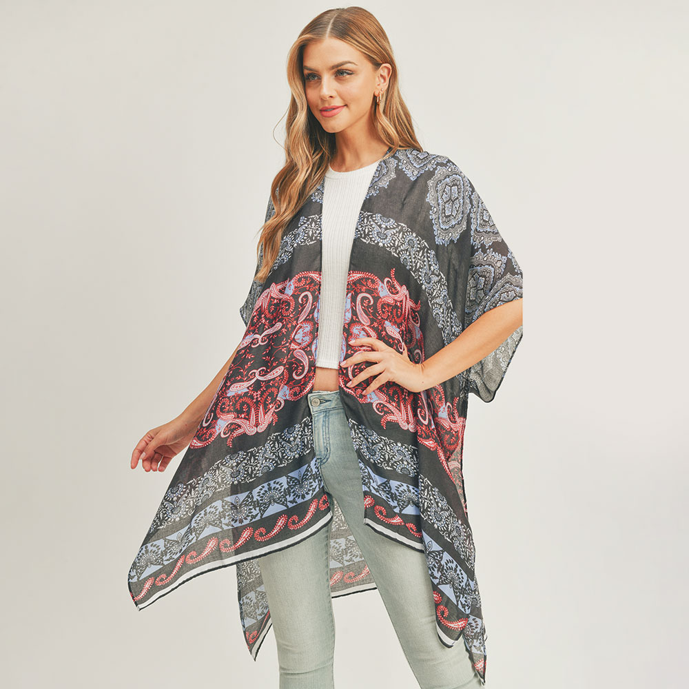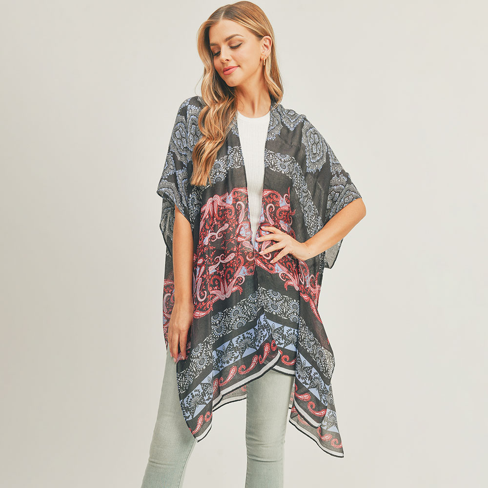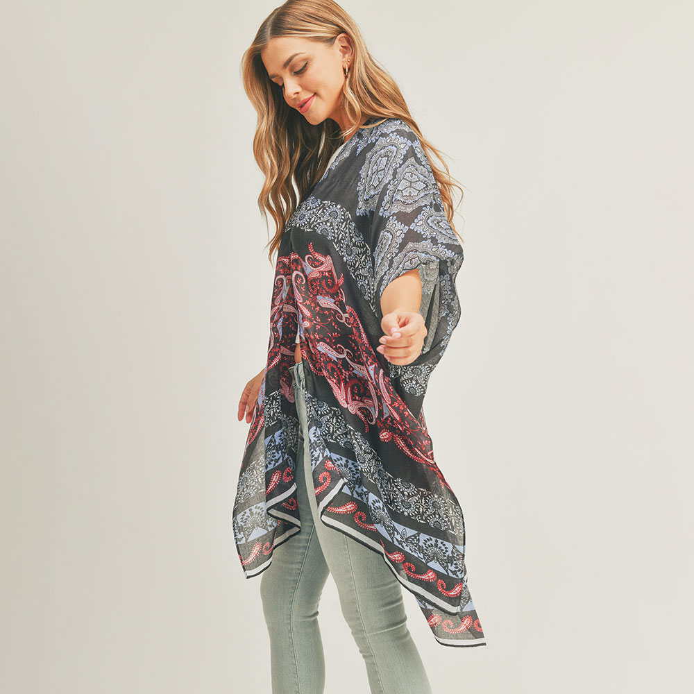 Paisley Print Cover Up Kimono Poncho