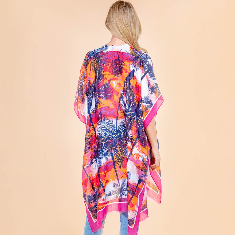 Palm Tree Leaf Pattern Open Front Kimono Poncho Wrap Palm Tree Leaf Pattern Open Front Kimono Poncho Wrap Palm Tree Leaf Pattern Open Front Kimono Poncho Wrap
