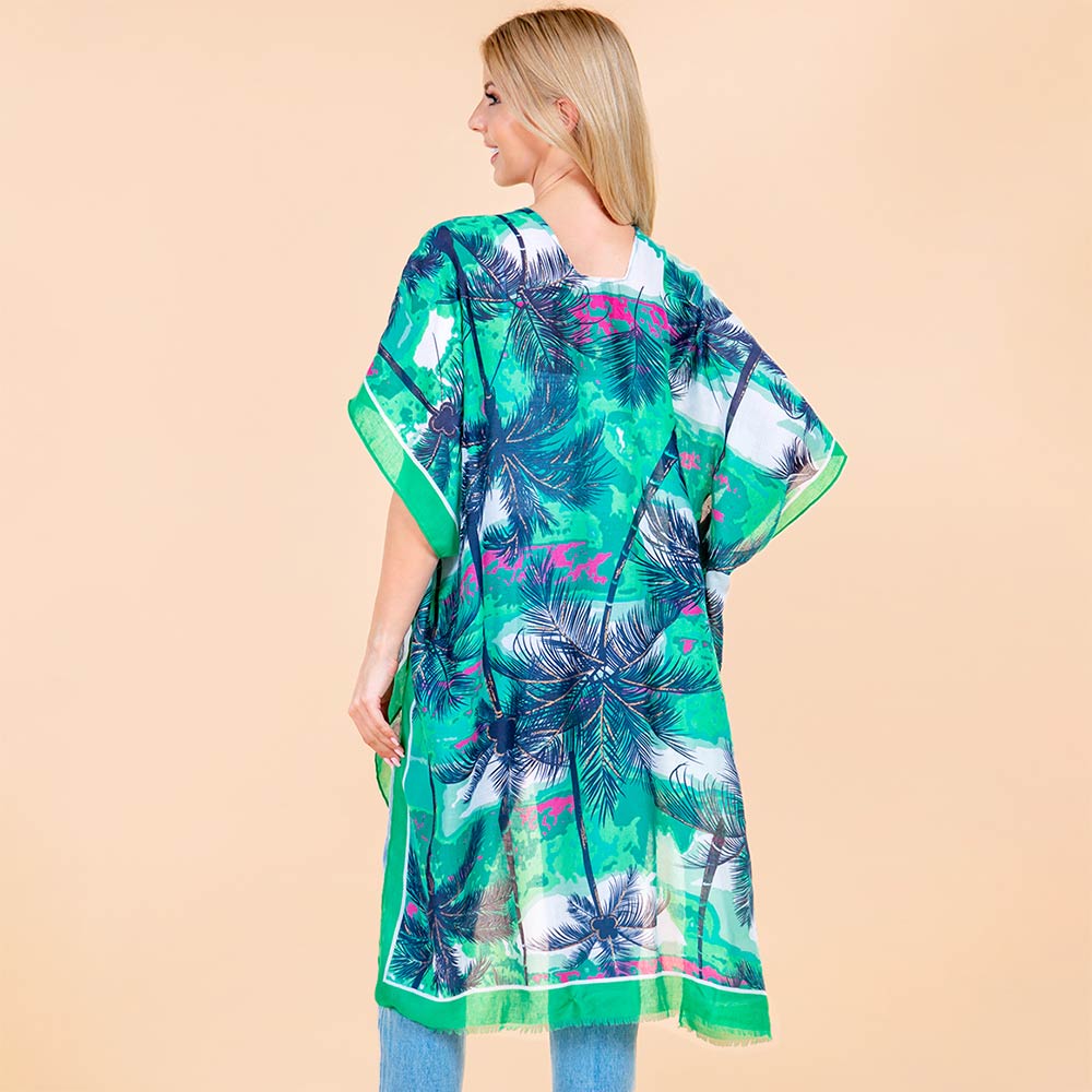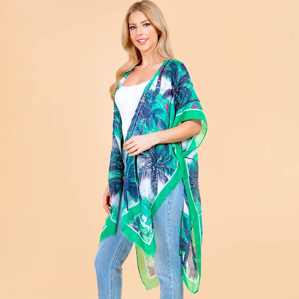 Palm Tree Leaf Pattern Open Front Kimono Poncho Wrap