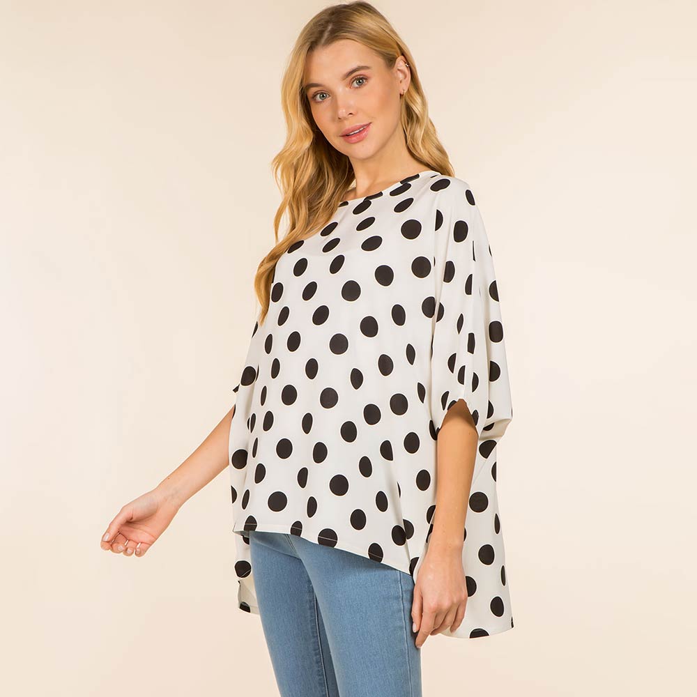 Polka Dot Pattern Loose Fit Poncho Top Polka Dot Pattern Loose Fit Poncho Top Polka Dot Pattern Loose Fit Poncho Top