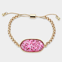 Round Square Faceted Gemstone Frame Beaded Stretch Bracelet