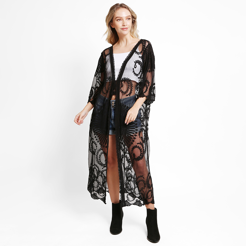 Tie-Knot Lace Cover Up Kimono Poncho