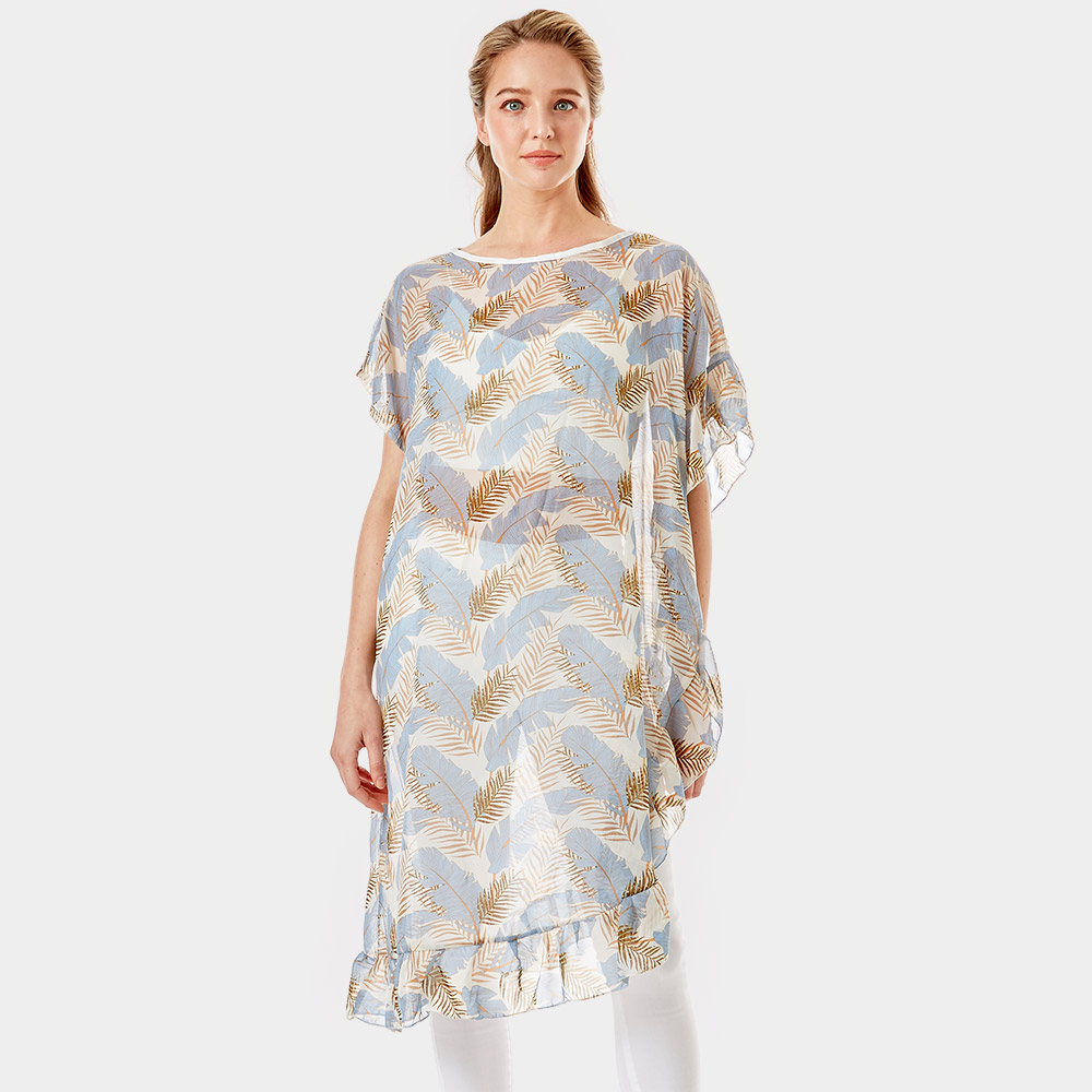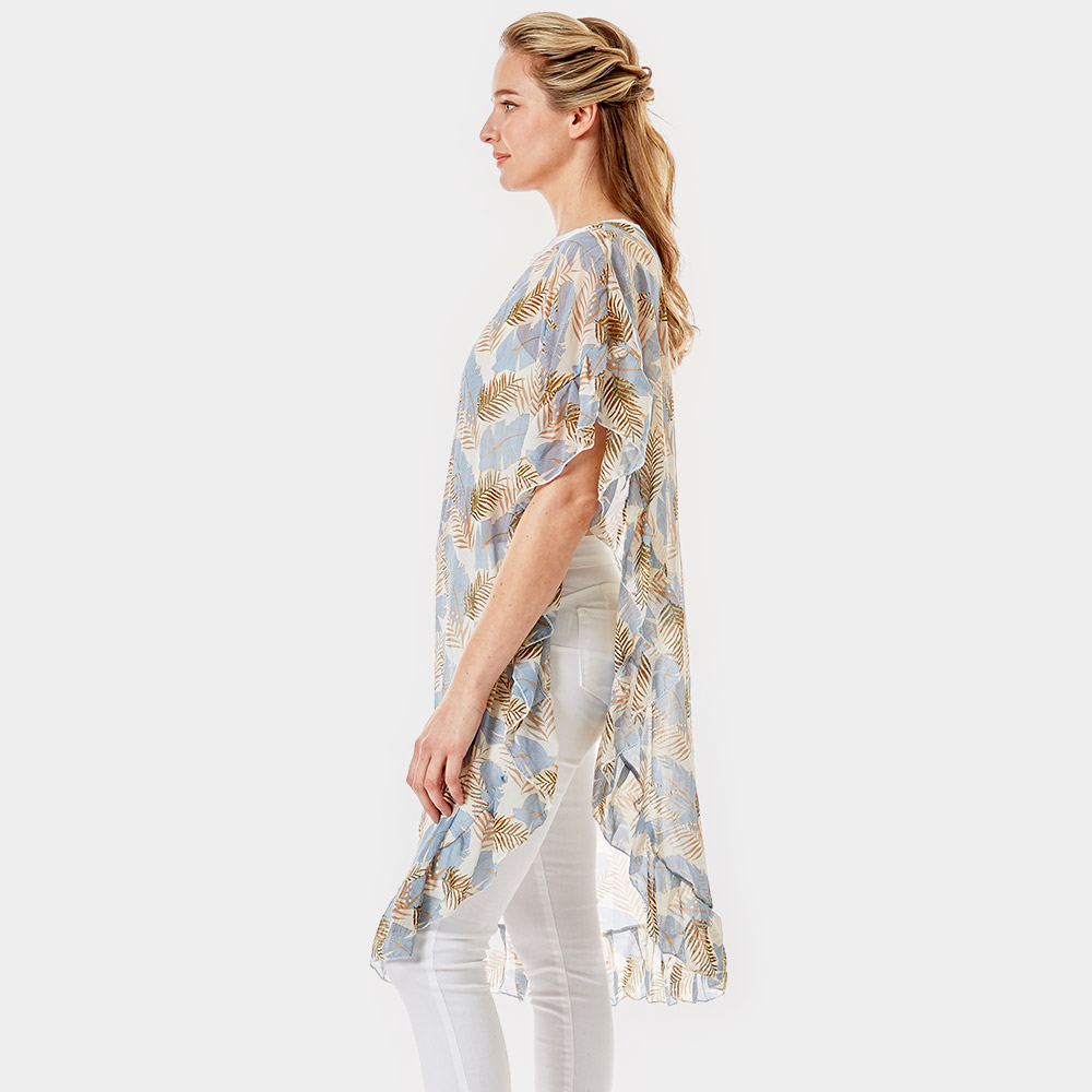 Tropical Leaf and Feather Half Ruffled Cover Up Poncho