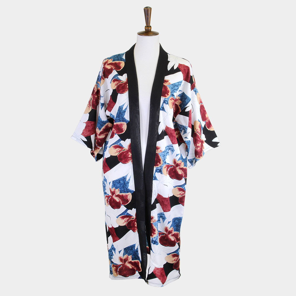 Tropical Printed Half Sleeves Cover Up Kimono Poncho