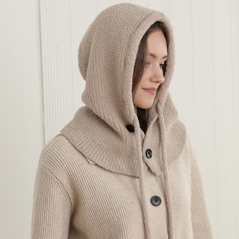 • Stay warm and stylish with this cozy knit hooded scarf. Designed with a soft textured finish, adjustable drawstring, and button details, it provides comfort and versatile layering. Perfect for adding extra warmth and a chic touch to casual winter and fall outfits.