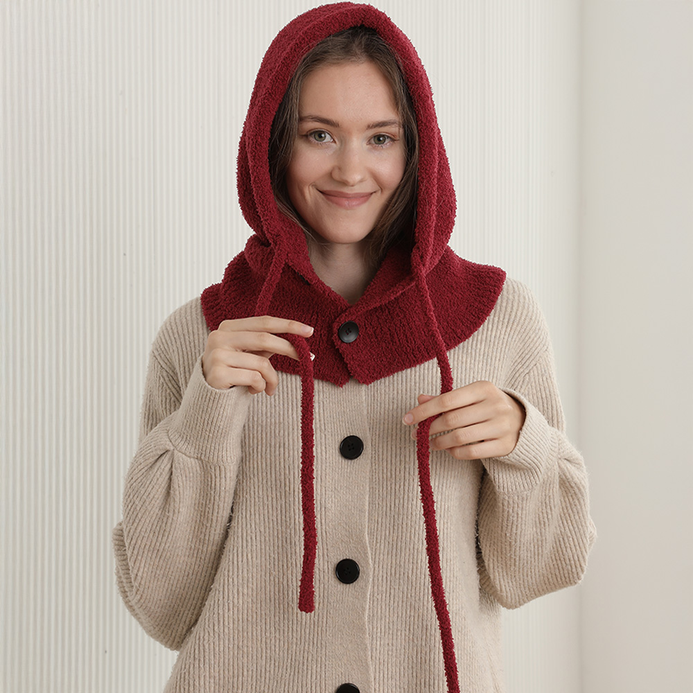 • Stay warm and stylish with this cozy knit hooded scarf. Designed with a soft textured finish, adjustable drawstring, and button details, it provides comfort and versatile layering. Perfect for adding extra warmth and a chic touch to casual winter and fall outfits.