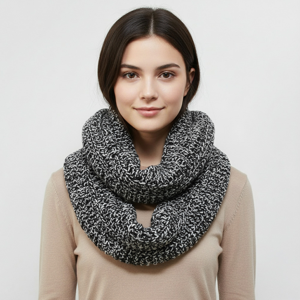 • Stay stylish and warm with this two-tone knit infinity scarf featuring a soft, textured weave. Its looped design provides versatile styling for casual or dressy looks, making it the perfect accessory for effortless layering and cozy cold-weather comfort.