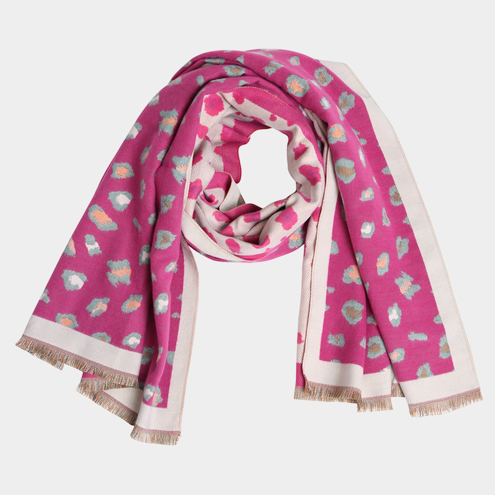 • A soft scarf featuring a chic leopard-inspired pattern with fringe edges. Lightweight and versatile, this accessory is perfect for layering, adding both warmth and a stylish touch to everyday and seasonal outfits.