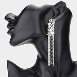 3Pairs - Metal Ball Rhinestone Triangle Fan Shaped Cheetah Patterned Genuine Leather Tassel Fringe Earrings