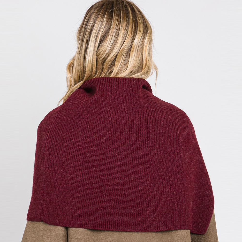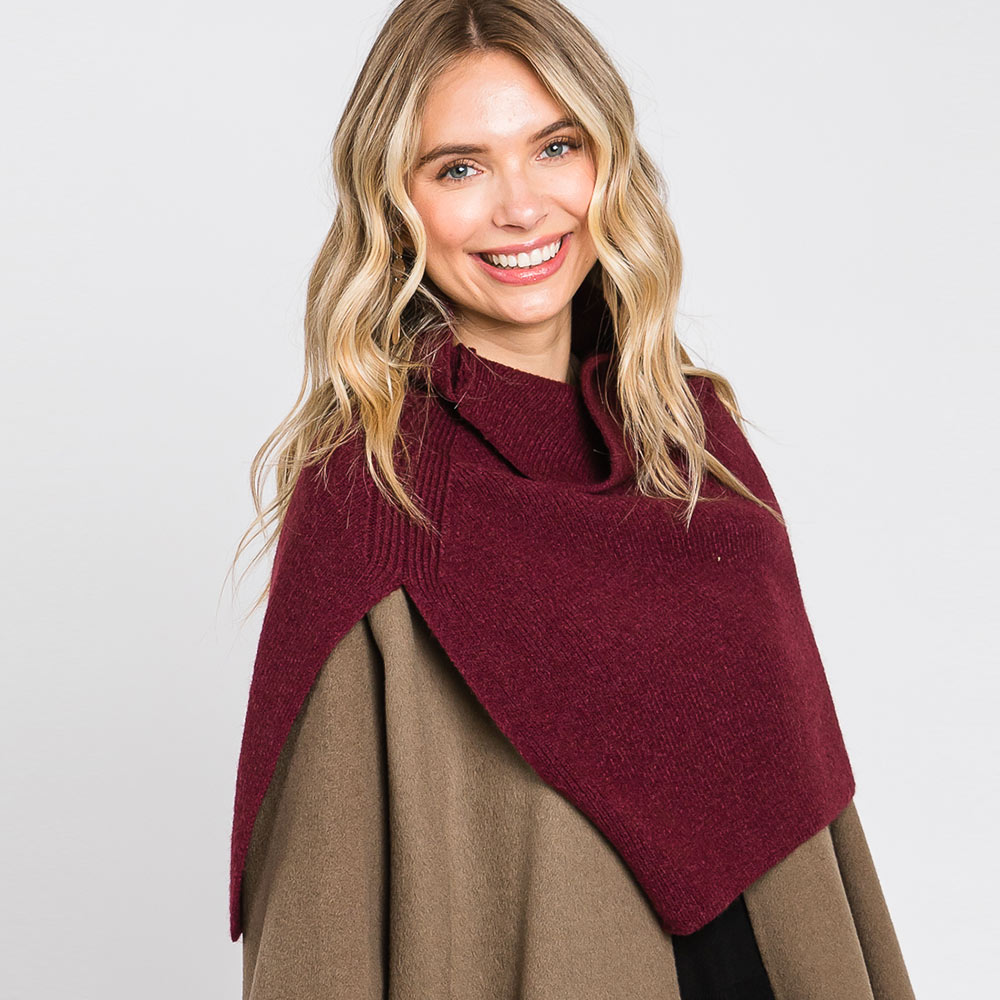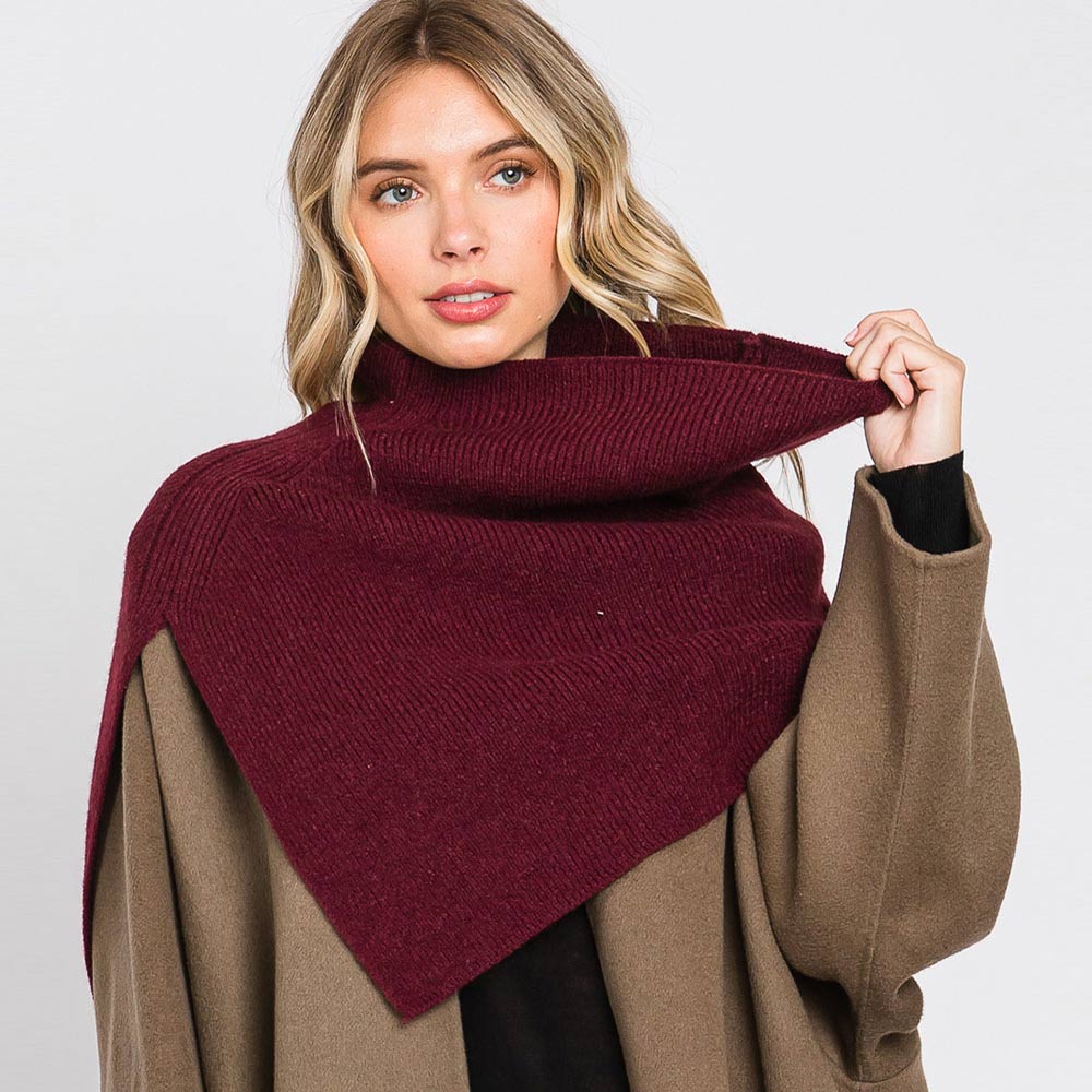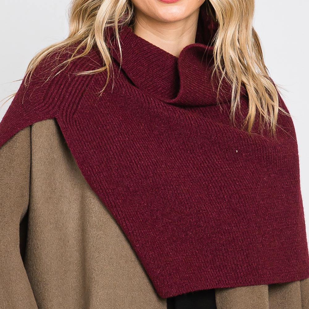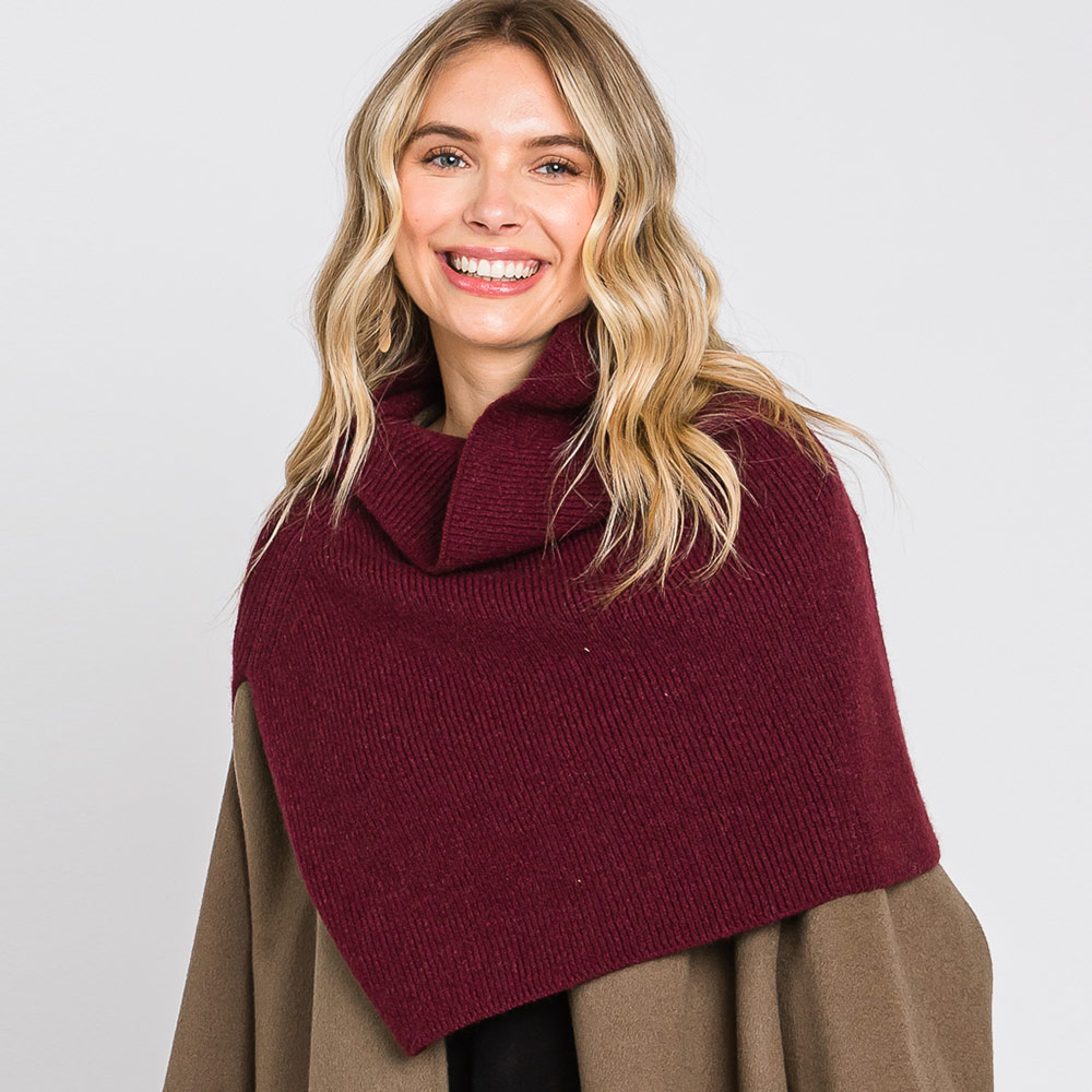 Details • Size : 19.25" X 19" • Material : 50% Acrylic, 28% Polyester, 22% Spandex • Chic asymmetrical knit turtleneck shoulder wrap offering cozy warmth and modern elegance. Perfect for layering over coats or sweaters, this stylish piece adds texture and sophistication to your outfit, making it an effortless statement accessory for cool-weather looks.