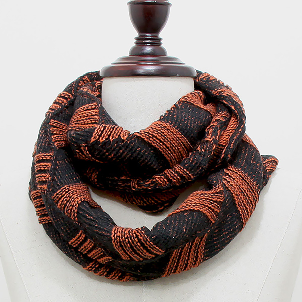Striped Textured Knit Infinity Scarf
