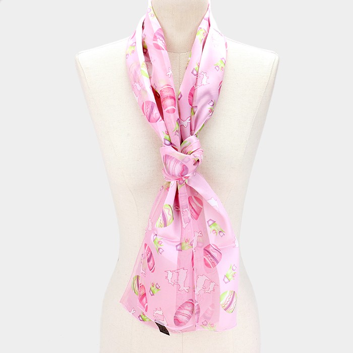 6PCS - Satin Striped Easter Egg Pattern Print Scarf