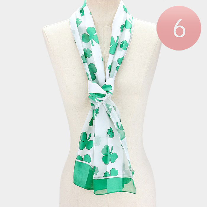 6PCS - Silk Feel Satin Striped Clover Print Scarves