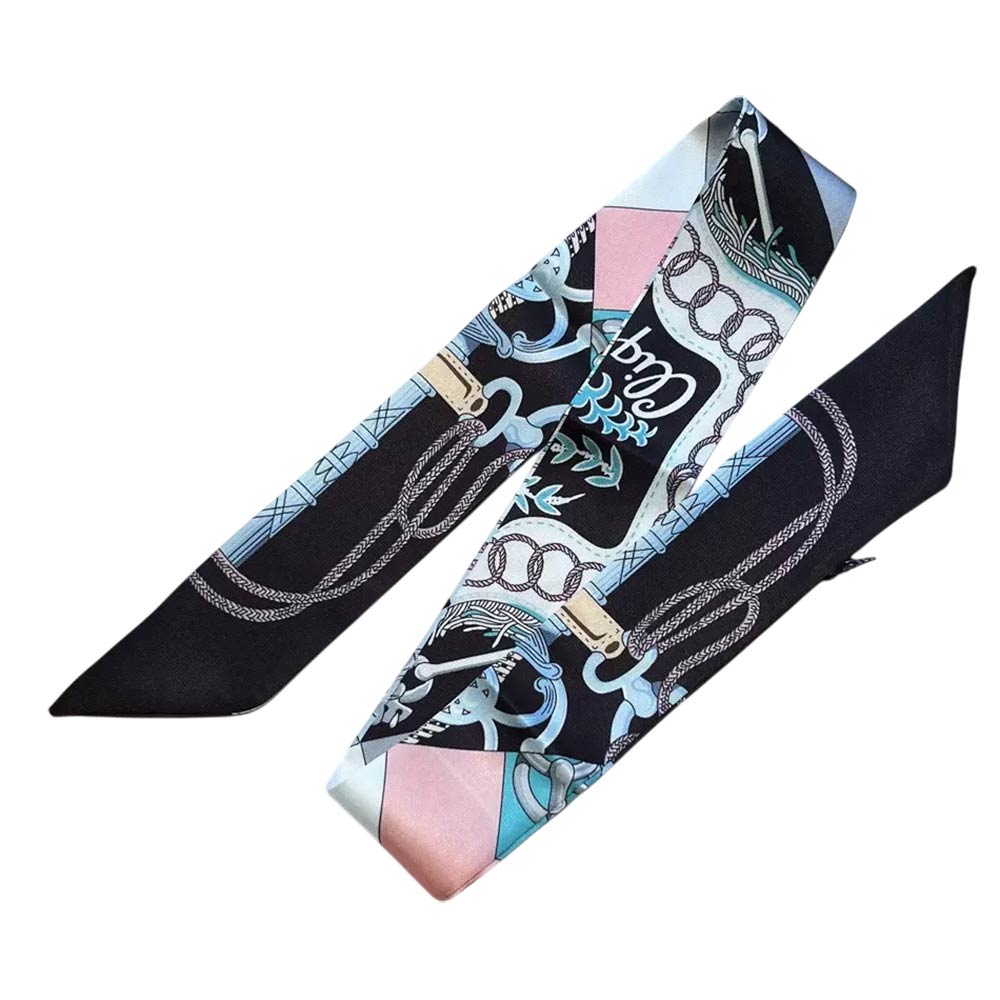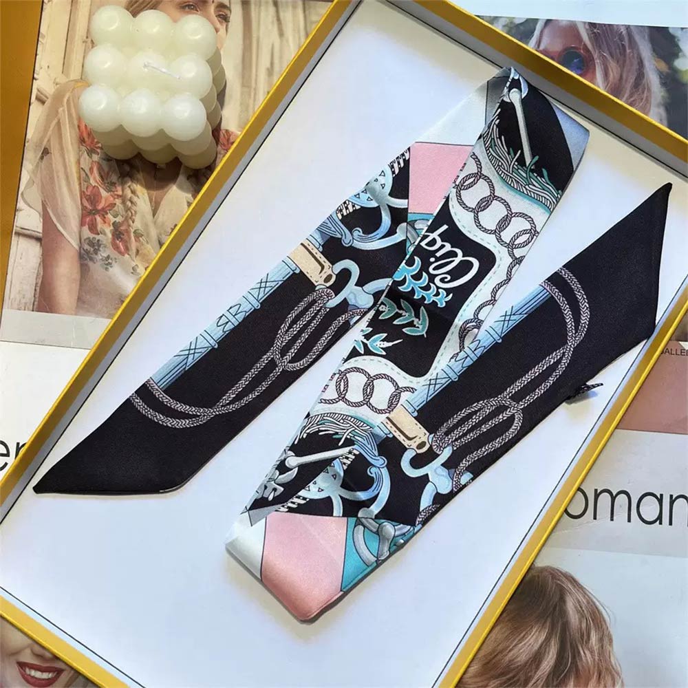 • Elegant twilly scarf featuring a refined chain-inspired pattern designed for versatile styling. Ideal for wrapping on handbags, tying around the neck, wrist, ponytail, or hat for a chic accent. A timeless fashion accessory that elevates everyday outfits, travel looks, and polished ensembles with effortless style.
