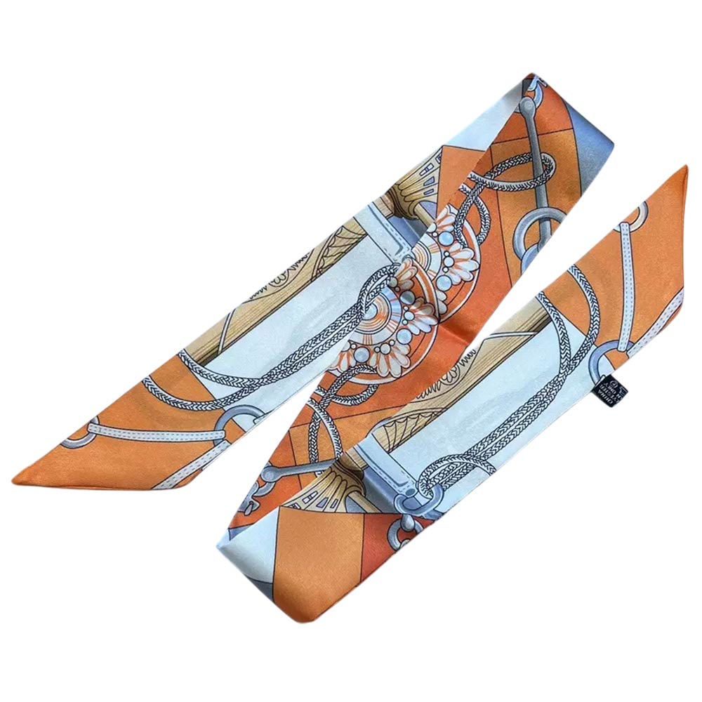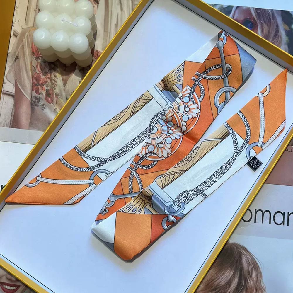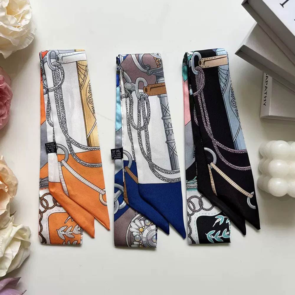 Details • Size : 2" X 35.4" • Material : 100% Polyester • Elegant twilly scarf featuring a refined chain-inspired pattern designed for versatile styling. Ideal for wrapping on handbags, tying around the neck, wrist, ponytail, or hat for a chic accent. A timeless fashion accessory that elevates everyday outfits, travel looks, and polished ensembles with effortless style.