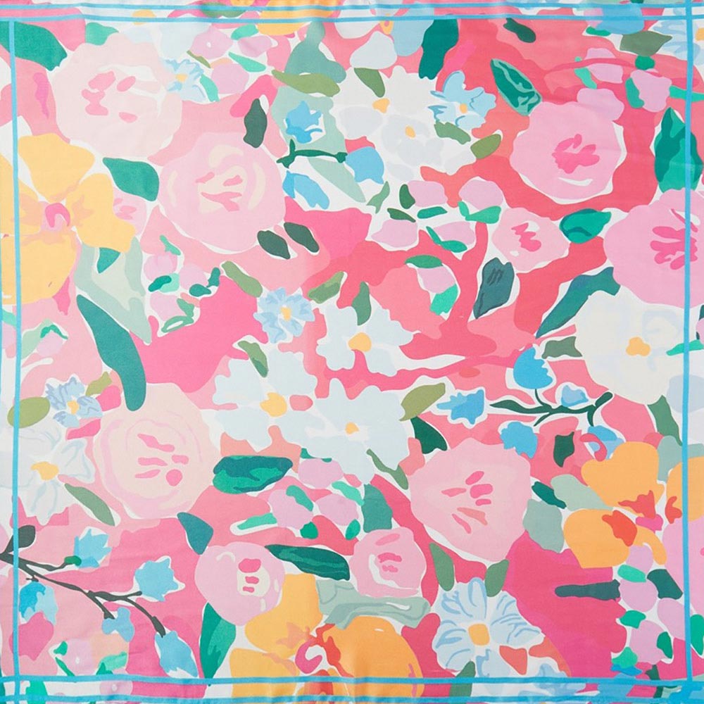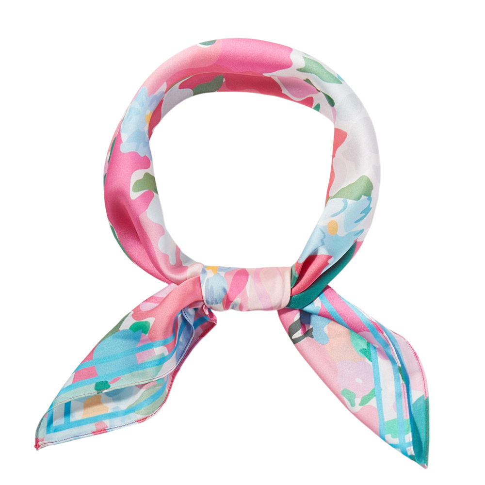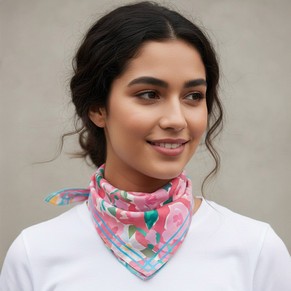 Details • Size : 27.5" X 27.5" • Material : 100% Polyester • Elegant square fashion scarf featuring a soft, painterly floral garden design. Ideal for refined everyday styling on the neck, hair, wrist, or handbag, this versatile accessory adds a graceful, feminine touch to casual looks, office outfits, and boutique-ready fashion collections.