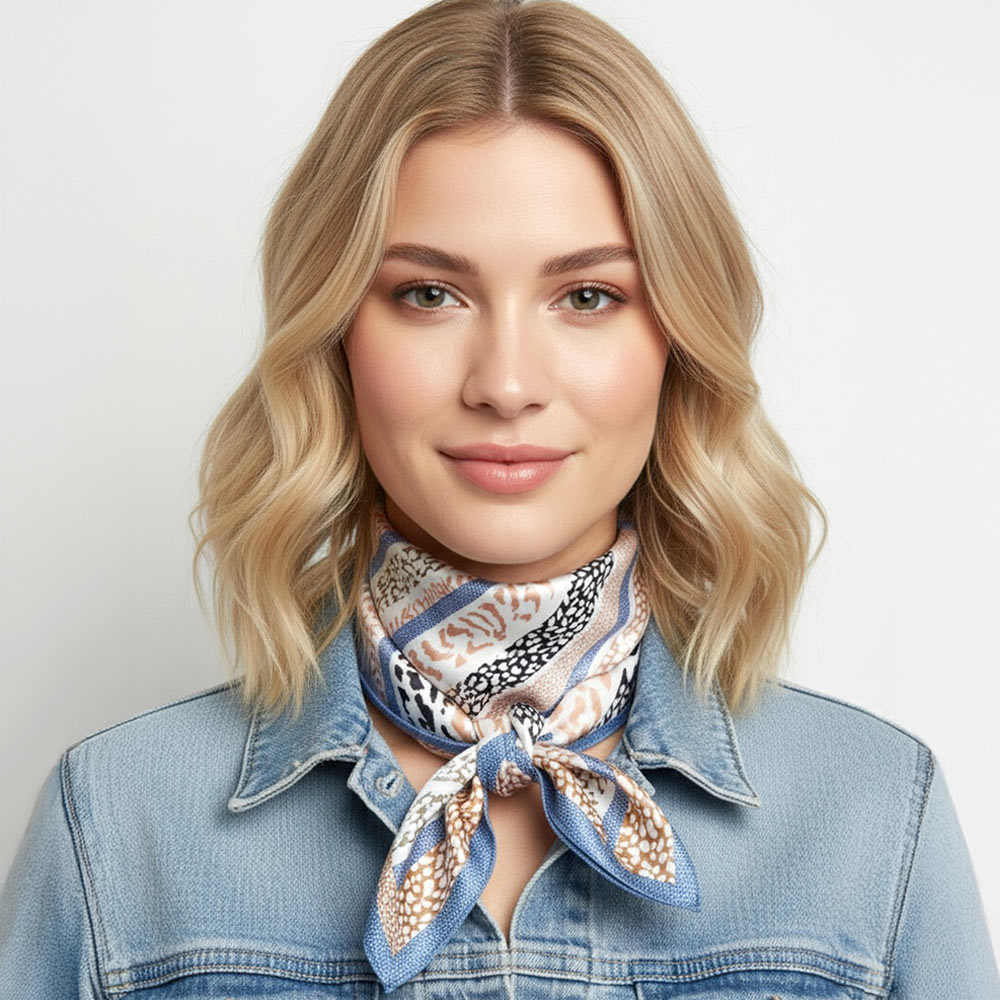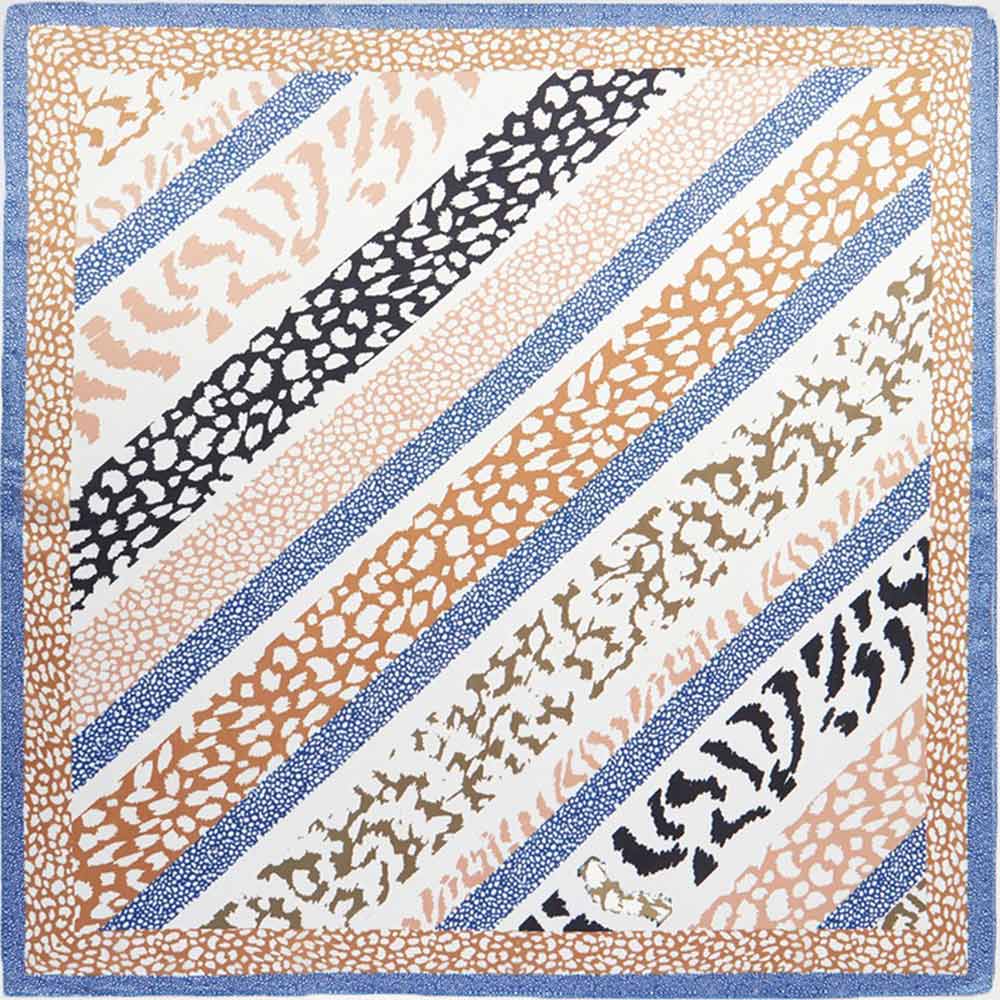 • Stylish square fashion scarf featuring an abstract animal stripe pattern with dynamic diagonal detailing and a refined border. Designed for versatile wear on the neck, hair, wrist, or handbag. A trend-driven accessory ideal for boutique collections, seasonal styling, and everyday fashion layering.