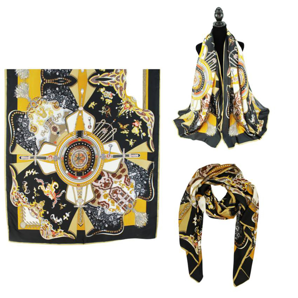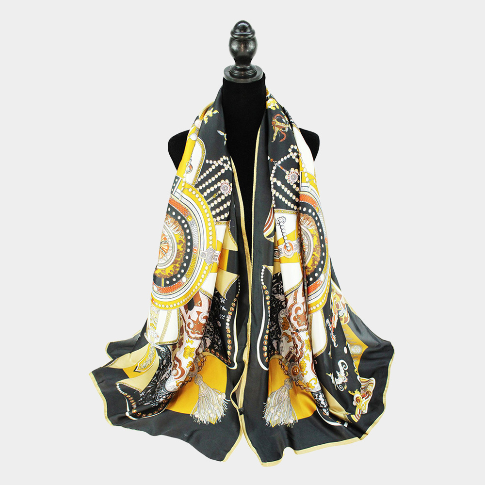 Abstract Paisley Printed Oblong Silky Satin Scarf Shawl