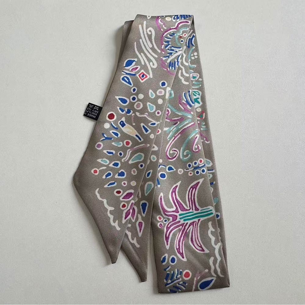 • Abstract pattern skinny scarf designed for versatile styling on hair, handbags, wrists, or necks. The elongated silhouette adds a refined, artistic touch to casual and dressy looks, making it ideal for boutique assortments, giftable displays, and everyday fashion styling.