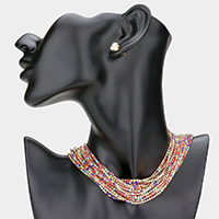 Layered Rhinestone Metal Chain Link Necklace