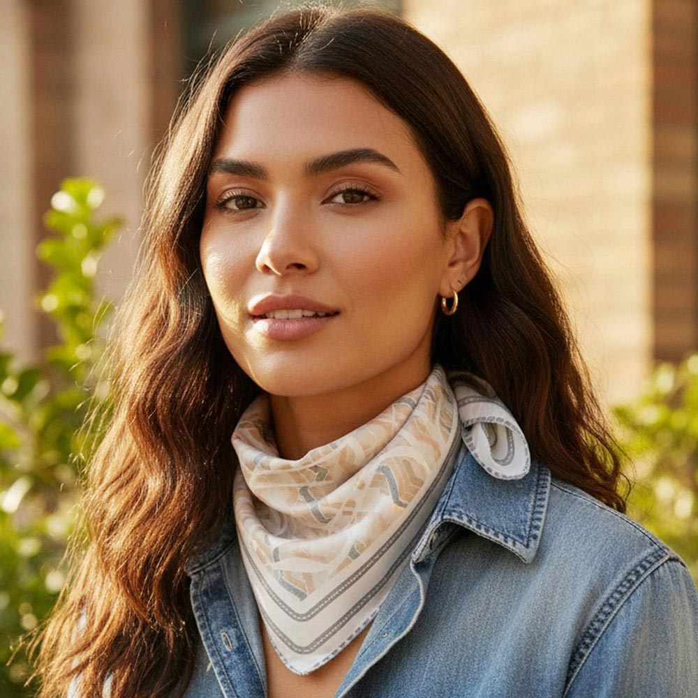 • Modern square fashion scarf featuring a playful abstract animal-inspired pattern with bold graphic movement. Designed for versatile styling on the neck, hair, wrist, or handbag, this statement accessory adds artistic character to everyday outfits, seasonal collections, and boutique fashion displays.