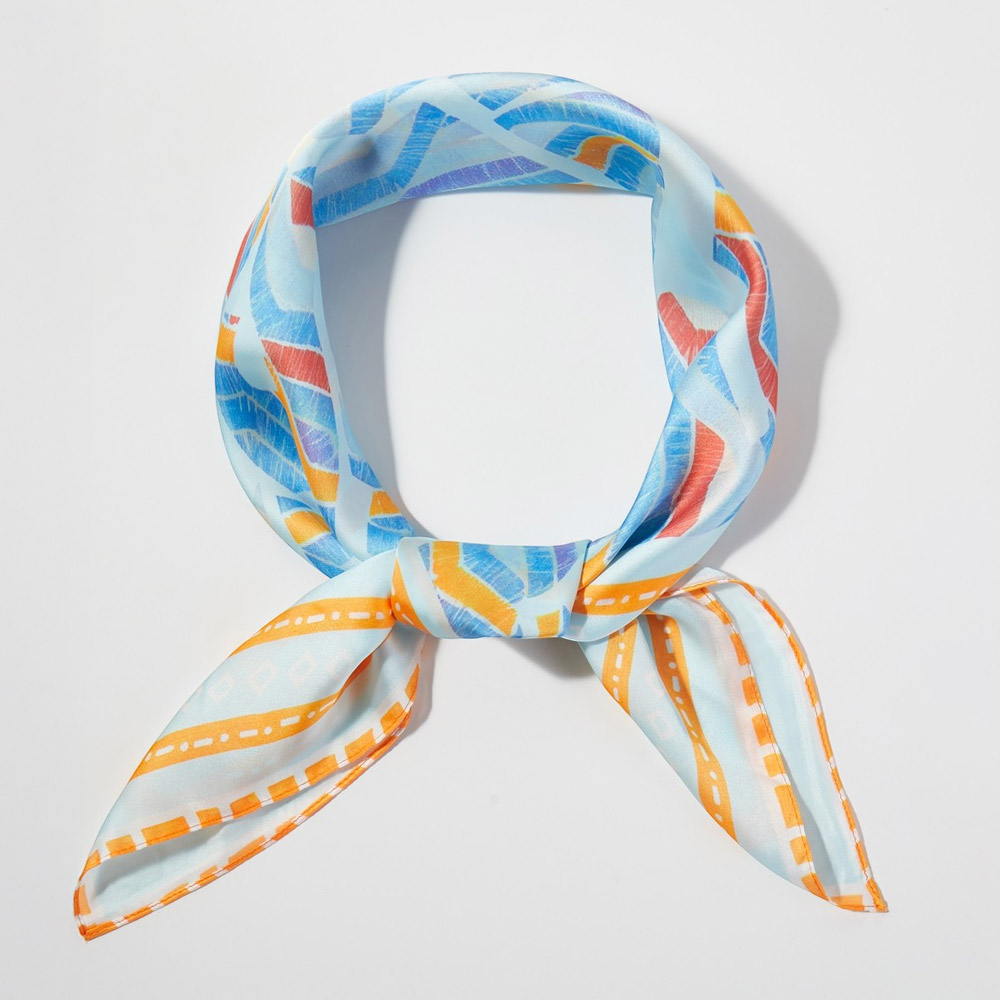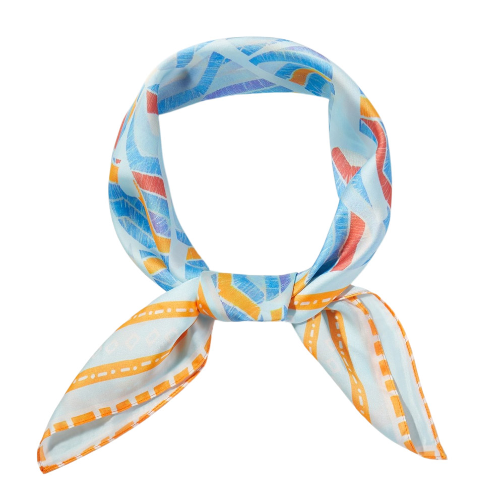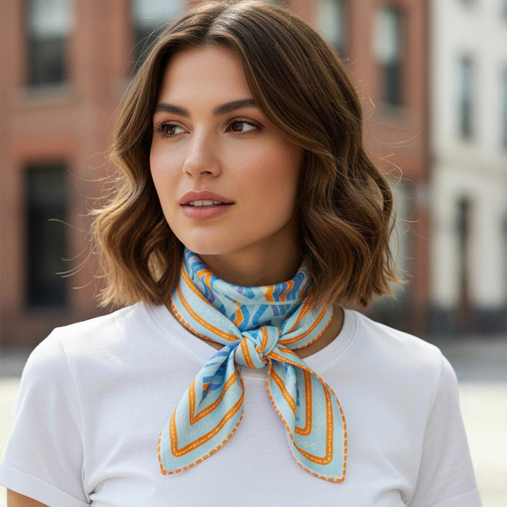 • Modern square fashion scarf featuring a playful abstract animal-inspired pattern with bold graphic movement. Designed for versatile styling on the neck, hair, wrist, or handbag, this statement accessory adds artistic character to everyday outfits, seasonal collections, and boutique fashion displays.