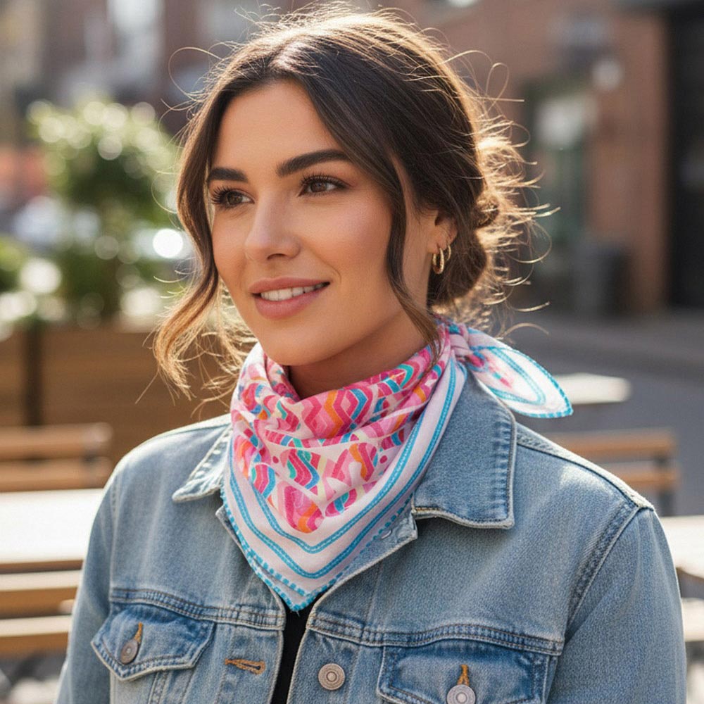 • Modern square fashion scarf featuring a playful abstract animal-inspired pattern with bold graphic movement. Designed for versatile styling on the neck, hair, wrist, or handbag, this statement accessory adds artistic character to everyday outfits, seasonal collections, and boutique fashion displays.