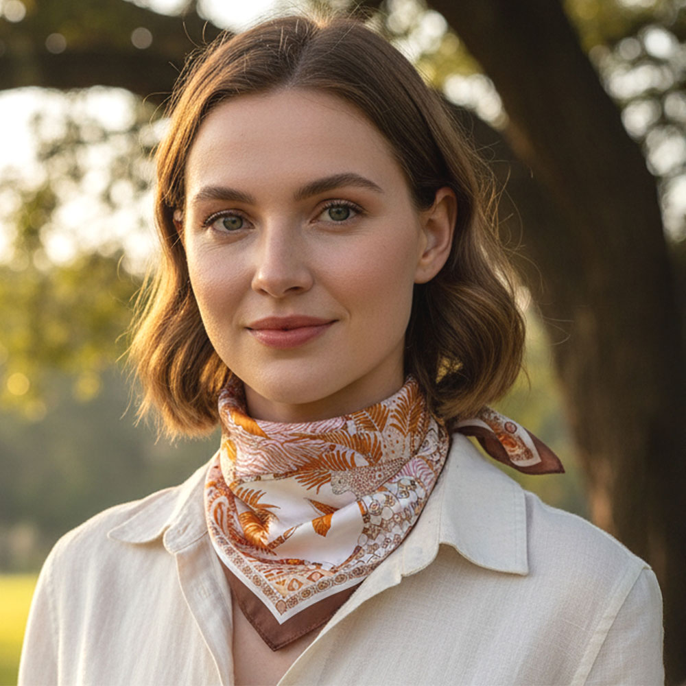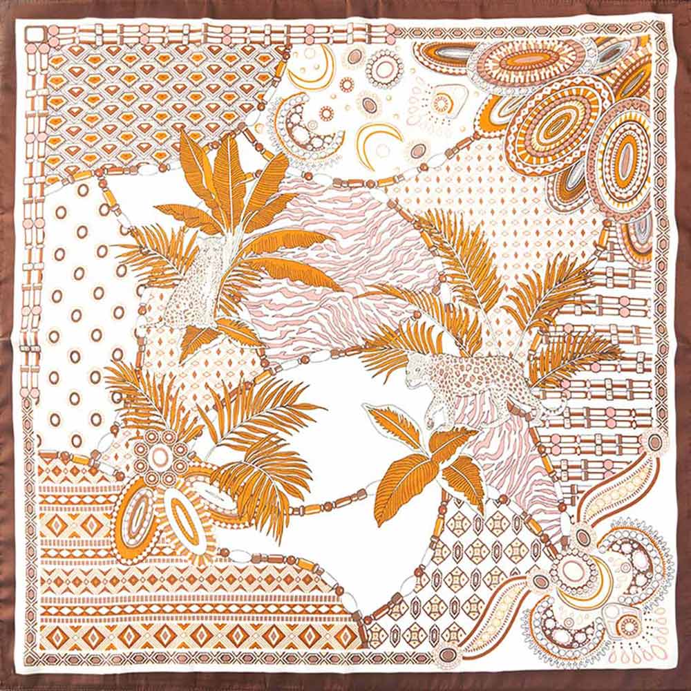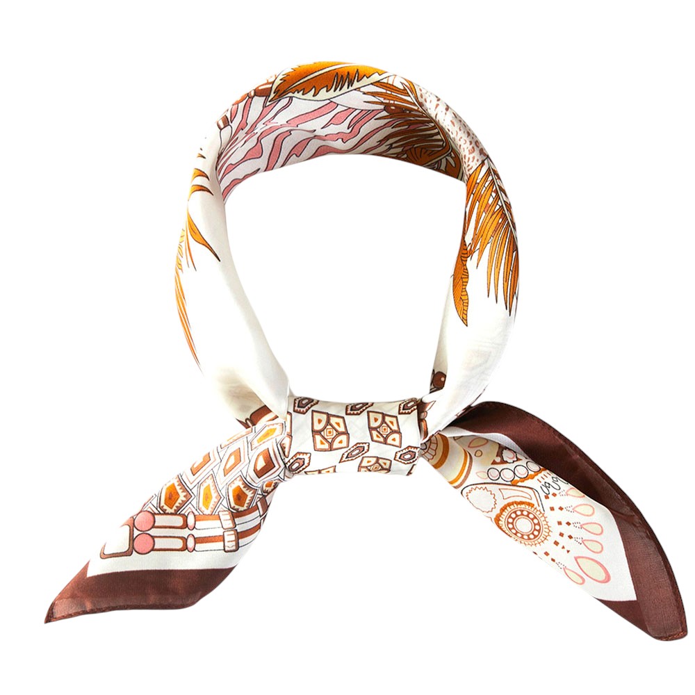 Details • Size : 27.5" X 27.5" • Material : 100% Polyester • Chic square fashion scarf featuring a tropical leopard and palm motif with smooth, lightweight drape for versatile styling. Perfect as a neck scarf, hair accessory, or handbag accent, adding an exotic and stylish touch to everyday outfits, travel looks, and special occasions. A trendy gift for fashion lovers.