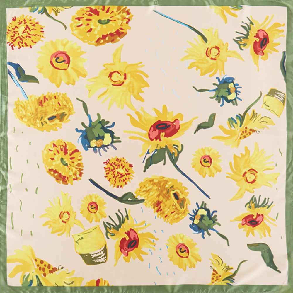 Details • Size : 27.5" X 27.5" • Material : 100% Polyester • Stylish square fashion scarf featuring an artistic sunflower print with a soft, lightweight drape for versatile styling. Wear as a neck scarf, hair accessory, or handbag accent to elevate casual outfits, travel looks, or workwear. A charming gift option for anyone who loves botanical designs and unique accessories.