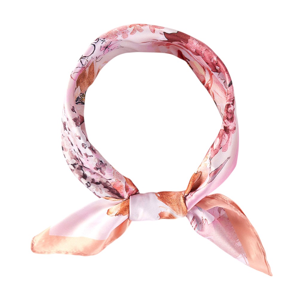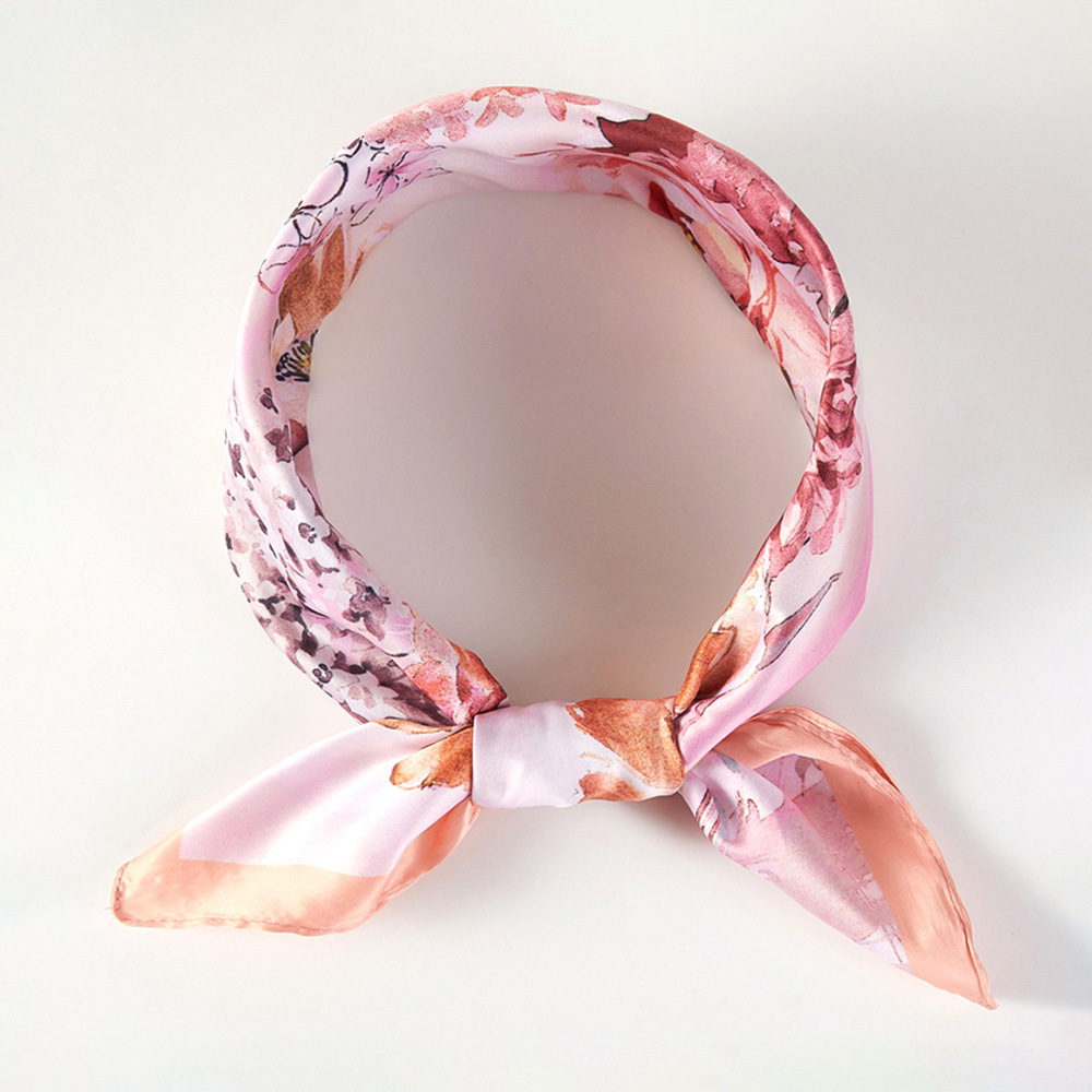 Blush Lavender Watercolor Floral Printed Square Silky Satin Scarf
