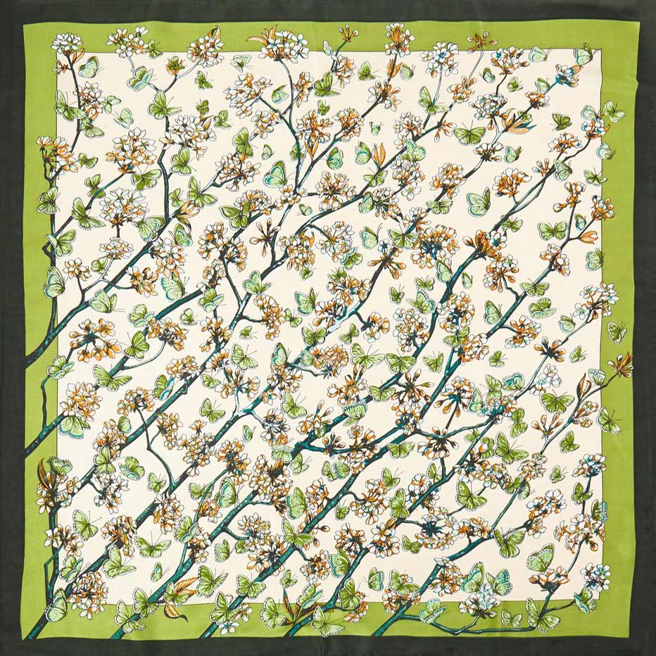 Elegant Floral Branch Butterfly Pattern Printed Square Silky Satin Bandana Scarf