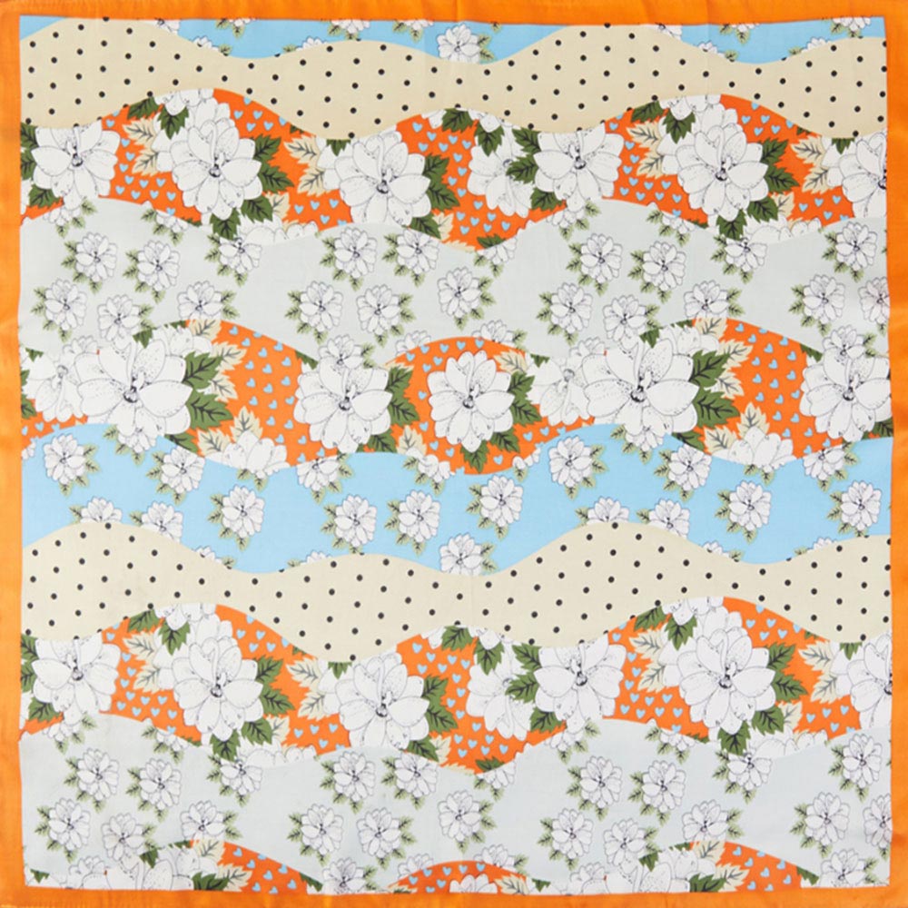 • This square scarf showcases a charming patchwork of floral motifs and playful dotted accents, offering a soft, artistic look. Lightweight and versatile, it adds a refined touch to everyday outfits, perfect for styling around the neck, hair, or as an accessory on bags.