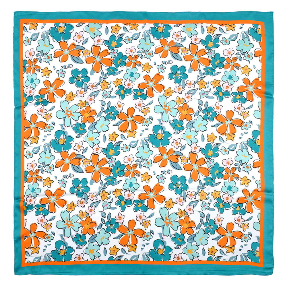 Flower Drawing Printed Square Silky Satin Bandana Scarf