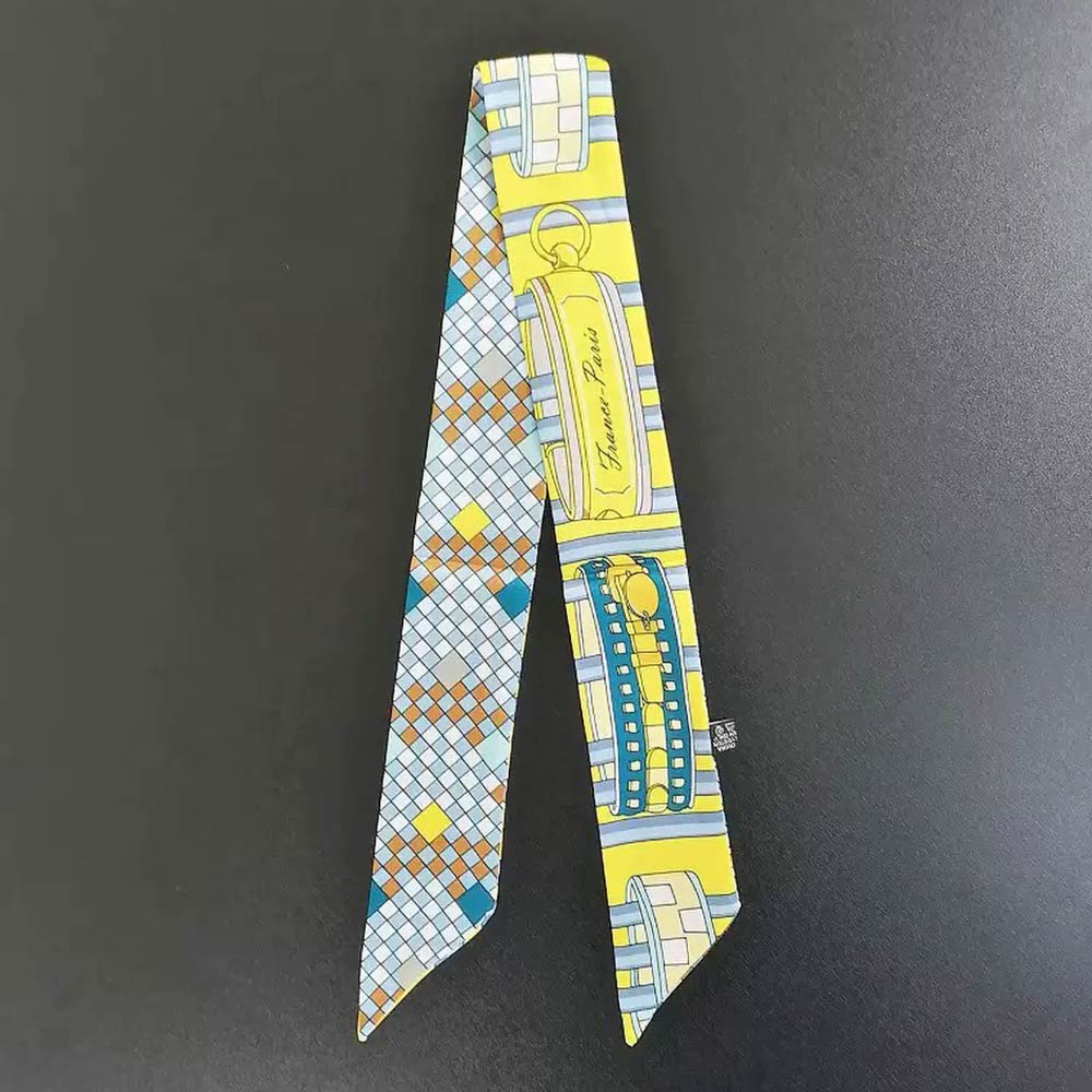 • Geometric skinny scarf designed for versatile styling on hair, handbags, ponytails, or wrists. The slim silhouette adds a polished accent to everyday outfits, travel looks, and boutique displays, making it an easy-to-style accessory for layering, gifting, and trend-forward collections.