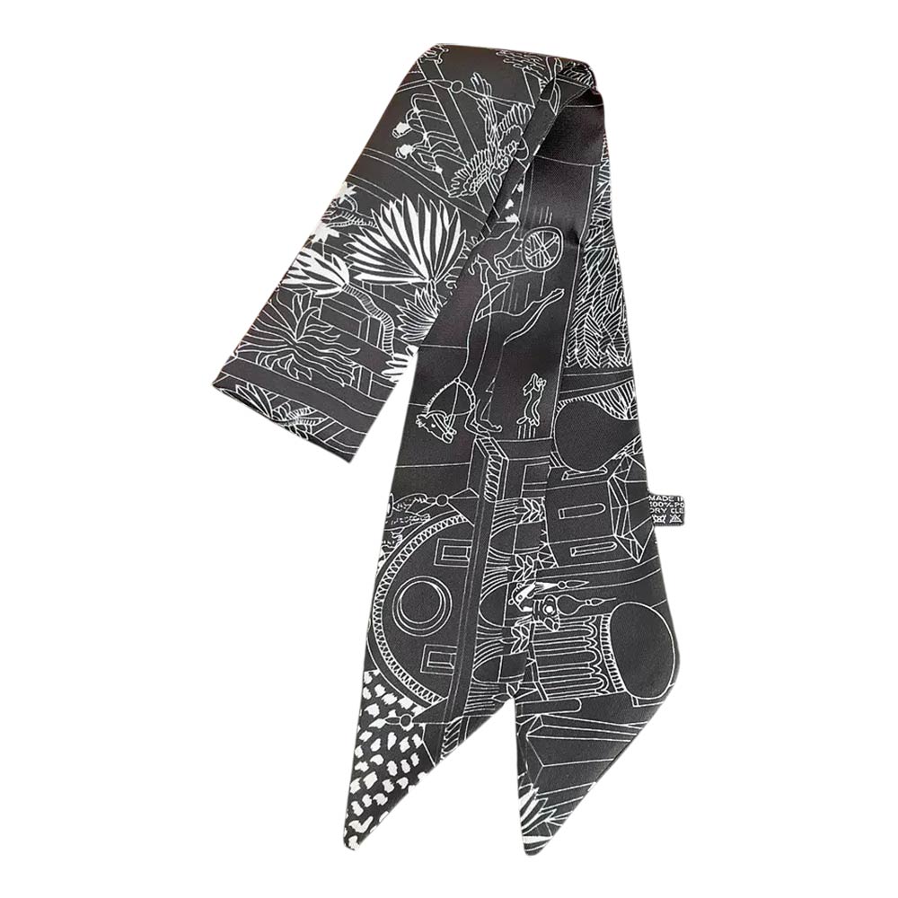 • Artistic skinny scarf featuring an illustrated scene print with a refined twilly silhouette for modern styling. Designed for versatile wear around the neck, wrist, hair, or handbag handle. Lightweight and easy to style, perfect for everyday outfits, travel, gifting, and adding a creative, fashion-forward accent to any look.