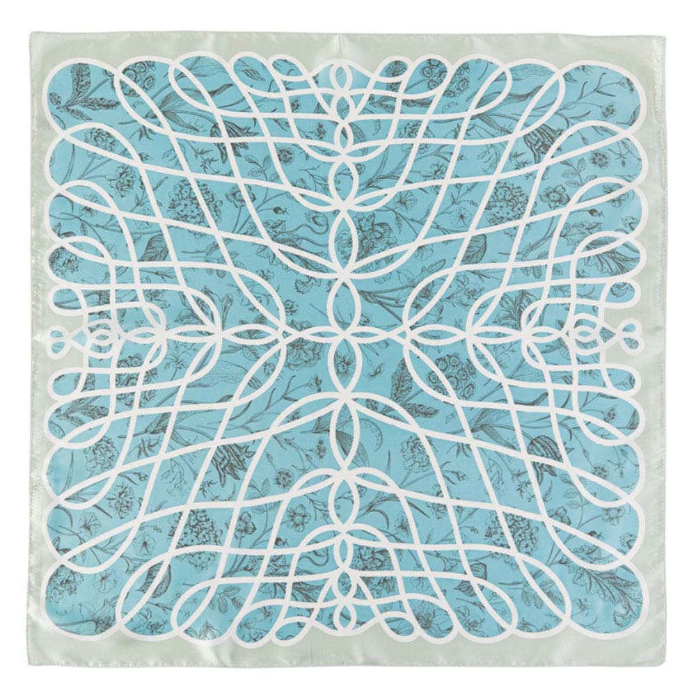 Intricate Overlay Pattern Printed Square Silky Satin Bandana Scarf