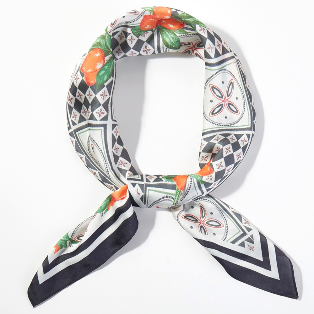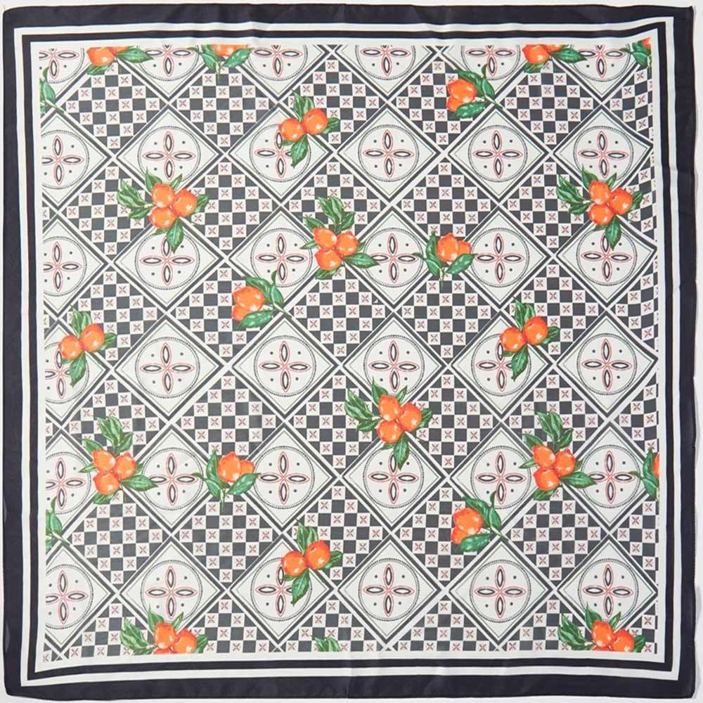 • Stylish square fashion scarf featuring an elegant lemon and geometric tile-inspired pattern. Designed for versatile styling on the neck, hair, wrist, or handbag, this statement accessory adds a fresh, polished accent to everyday looks, resort outfits, and boutique fashion collections.