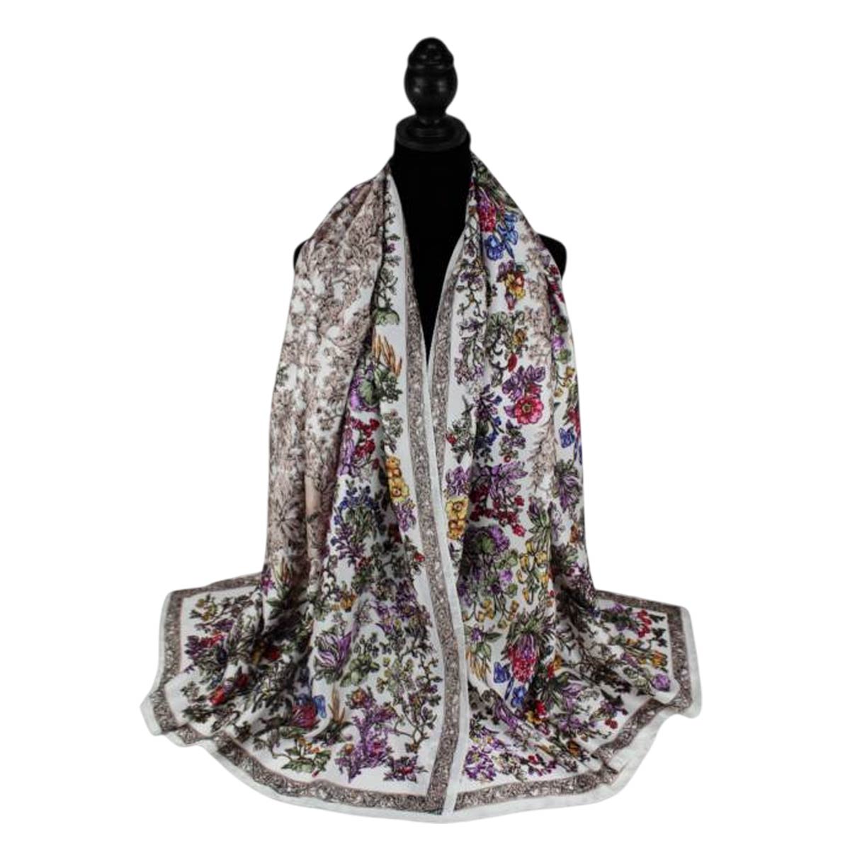 Details • Size : 35" X 78" • Material : 100% Viscose • Breathable, Lightweight, Skin-friendly and Soft • This vintage botanical square scarf features an intricate floral pattern with a classic balanced layout. Designed for versatile styling, it can be worn around the neck, hair, handbag, or shoulders. A timeless accessory ideal for boutiques, gifting, seasonal collections, and everyday outfits with an elegant touch.