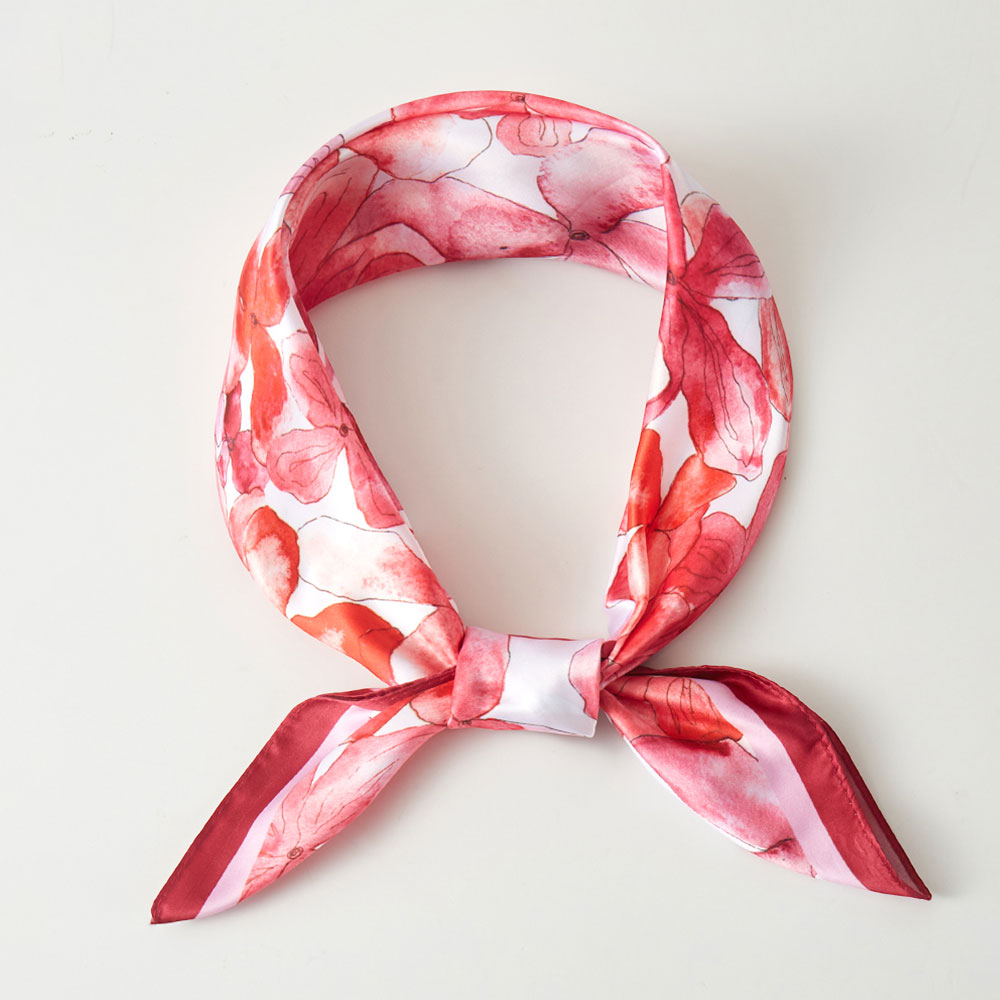 Watercolor Floral Pattern Printed Square Silky Satin Bandana Scarf